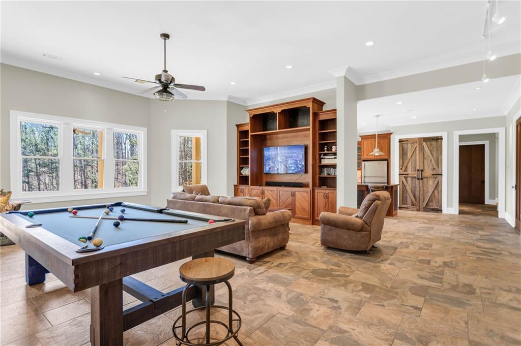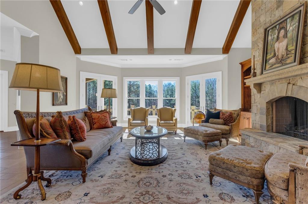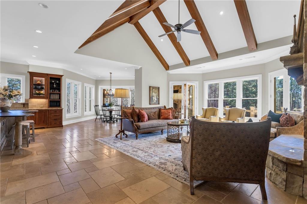 - FeaturesBeamed Ceilings, Bookcases, Cathedral Ceiling(s), Crown Molding, Dry Bar, Entrance Foyer 2 Story, High Ceilings 10 ft Lower, High Ceilings 10 ft Main, High Ceilings 10 ft Upper, His and Hers Closets, Walk-In Closet(s), Wet Bar