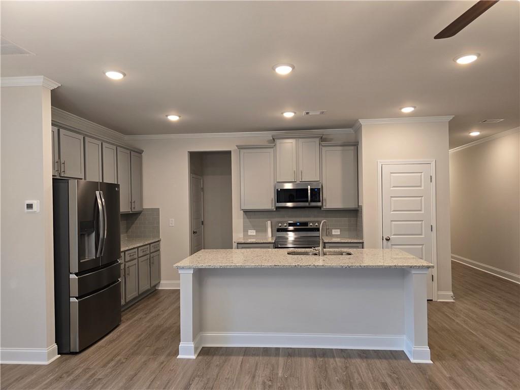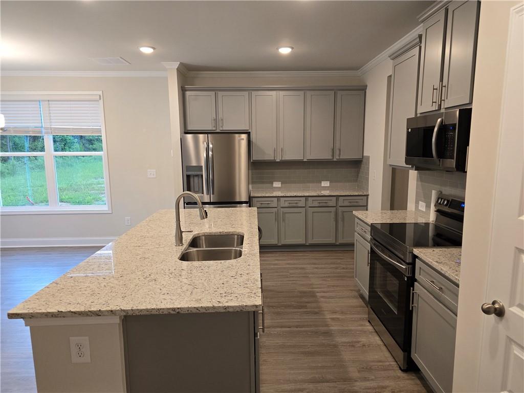 End unit, leveled backyard with wooded view! The new Publix shopping center is right next to the home! The community is conveniently located a few minutes from Lake Lanier, 6 miles to downtown Gainesville. It is also close to High 60, 136 and 283. This beautiful like-new super-clean townhouse offers 2-story 3 bedrooms and 2 and half bathrooms. It features a gourmet kitchen with a large island, ample cabinet space, stainless steel appliances with microwave, and a beautiful fireplace in the family room. Luxurious master bathroom features double vanities, a shower and a garden tub and a large walk-in closet. Landlord is looking for quick move in, at least a 12 months lease.