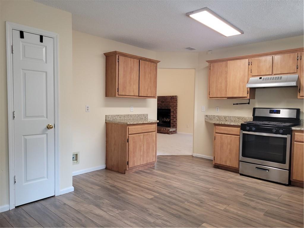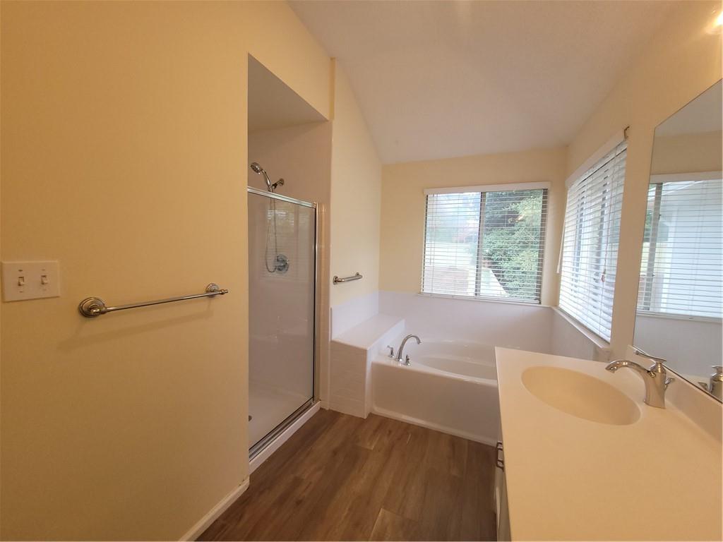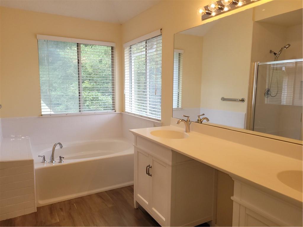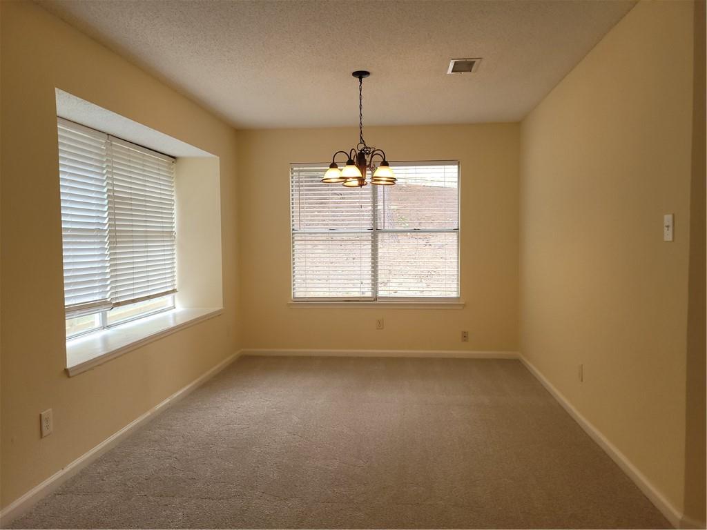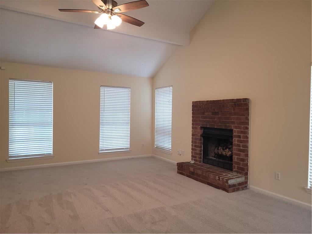 Light and bright with new carpet. Great room with fireplace, vaulted ceiling and ceiling fan, spacious eat-in kitchen, large Main Bedroom with walk-in closets, main bathroom with double vanity and separate garden tub and shower, fenced backyard. There is no refrigerator, but it is negotiable