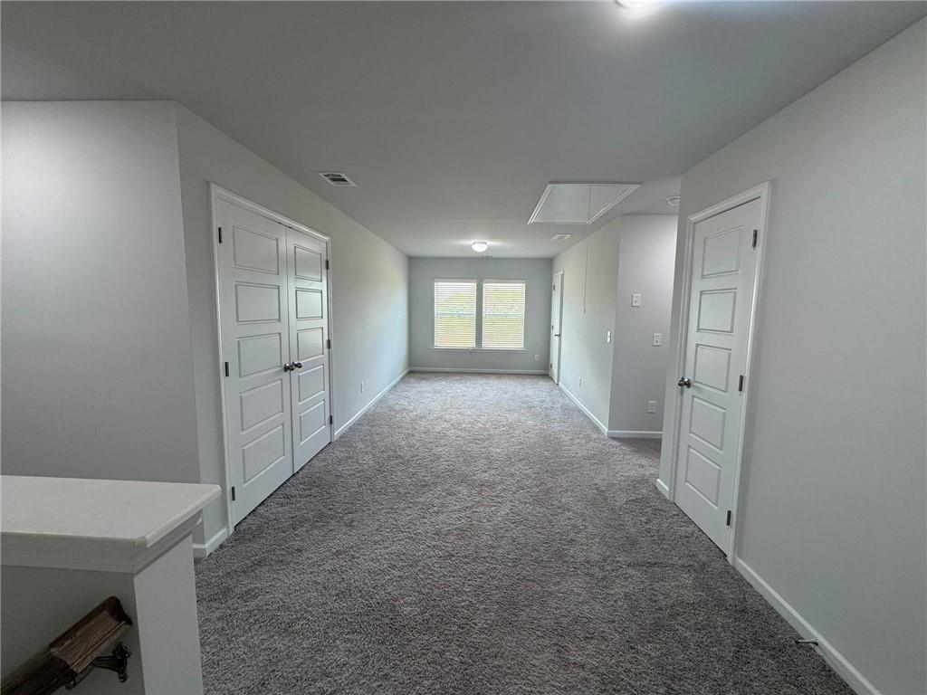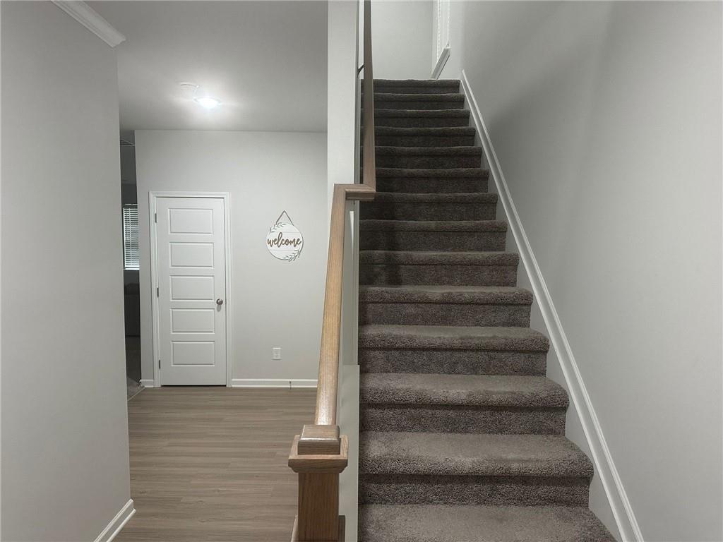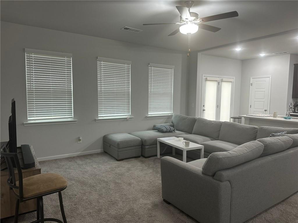 For Lease – This elegant 3-bedroom, 2.5-bath Greenbrier floor plan is located in a highly desirable community with easy access to shopping, dining, grocery stores, and major routes including GA-400 and Hwy 53. The upper level features a spacious owner’s suite, two additional well-sized bedrooms, two full baths, and a versatile loft ideal for entertainment, gaming, or relaxation. Craftsman-style open railings on both levels add charm and character throughout the home. The modern kitchen is designed with 36-inch upper cabinets, quartz countertops, LED lighting, and stainless steel appliances, including a microwave with exterior venting. The owner’s suite bathroom offers a spa-inspired retreat with a 42-inch tiled shower, a fiberglass garden tub, and a quartz vanity. Positioned on a desirable north-facing corner lot with a large yard, this home offers thoughtful upgrades, timeless design, and everyday convenience !