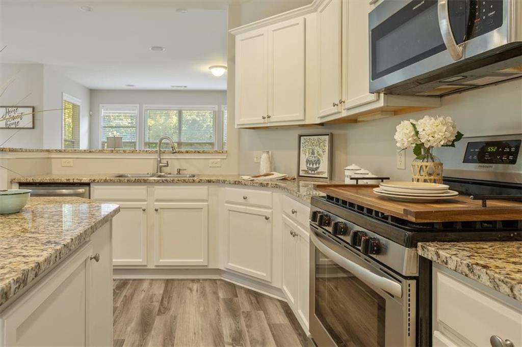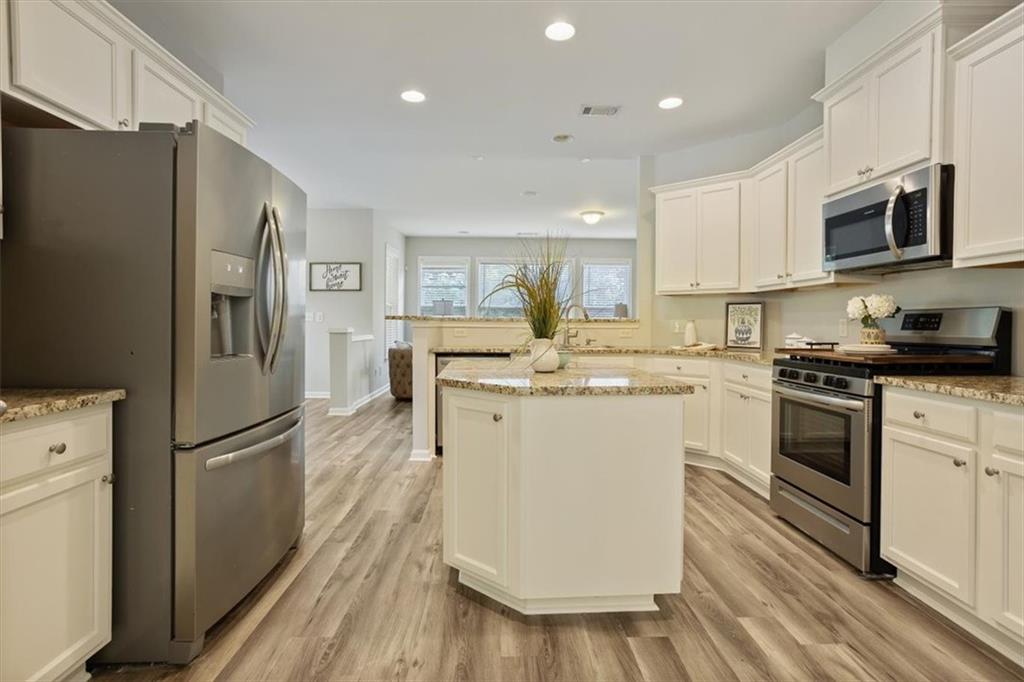 - KitchenBreakfast Room, Cabinets White, Eat-in Kitchen, Kitchen Island, Pantry, Stone Counters, View to Family Room