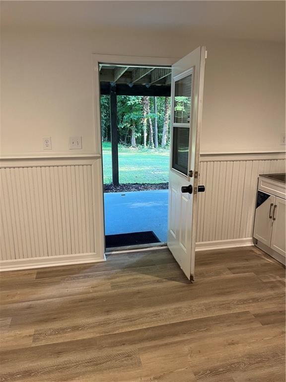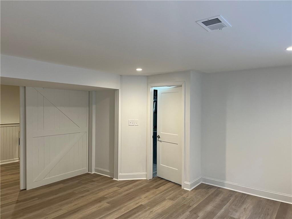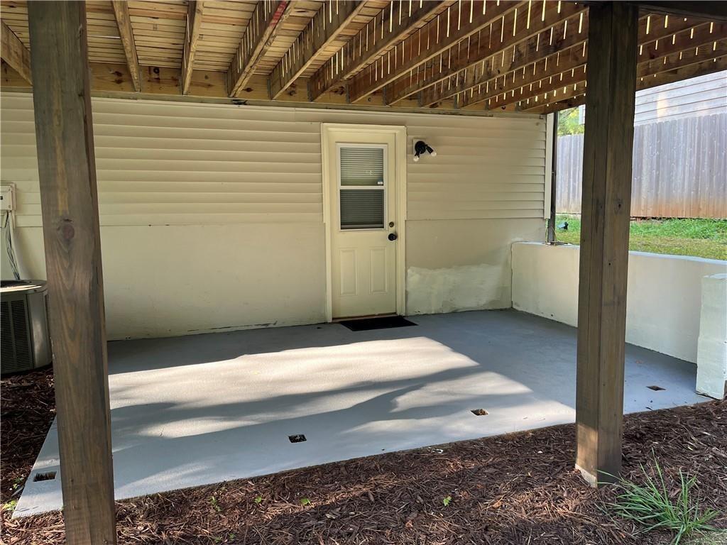 Recently renovated Private Studio Apartment on ground floor with private shaded porch and a tranquil view. A secure private exterior entrance plus an additional garage entrance. Extra Large Bedroom with lovely natural lighting accented by a gorgeous painted brick fireplace. Eat-in-Kitchen including a new fridge, range, sink, microwave and cabinet, Full Custom Bath, Private interior storage room, Exclusive Laundry room including washer and dryer. Unfurnished. Pets considered with a pet security deposit and additional $50 monthly rent. One enclosed garage parking space included with additional driveway and street parking available. Utilities are a percentage of the monthly whole house electric, gas, and water bills. Location, Location, Location... Quiet Roswell neighborhood less than a mile from Hwy 9 / Alpharetta Highway a few miles away from GA/400. Parks, Greenway, Shopping, Entertainment, and Restaurants all nearby. 12 month lease. Follow the link to RentSpree to apply. $49.99 application fee per adult paid directly to RentSpree. Call or text listing agent Mark for more details and showing requests. Vacant