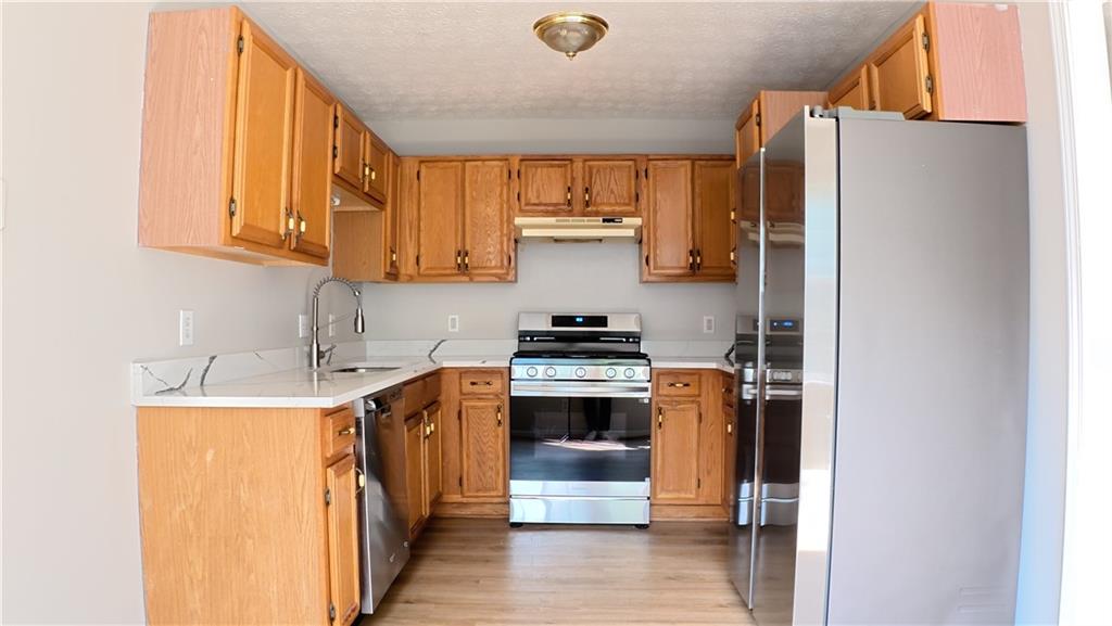 Quiet Community, 4 bedroom and 3 full baths, Deck looking back large backyard, No carpet in the house, Kitchen with sunny breakfast area features Quartz countertops, Wood cabinets, Refrigerator, Laundry room with Washer and Dryer, Master with Garden Tub & separate Shower. Large Family room with FirePlace, Separate Dining room, 2 Car garage with garage door opener. Private fenced Backyard.
