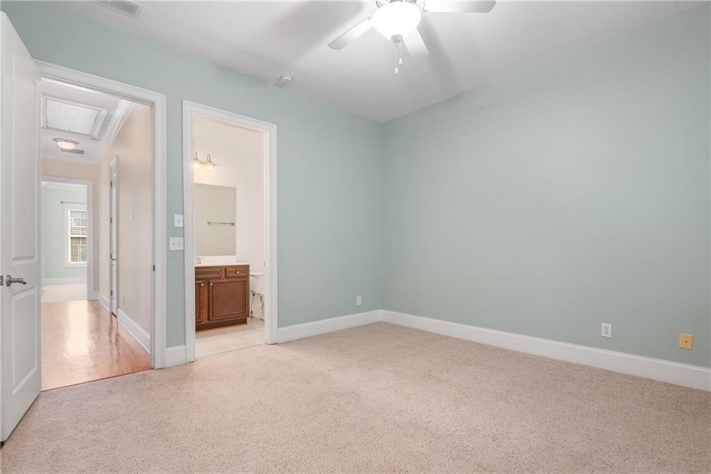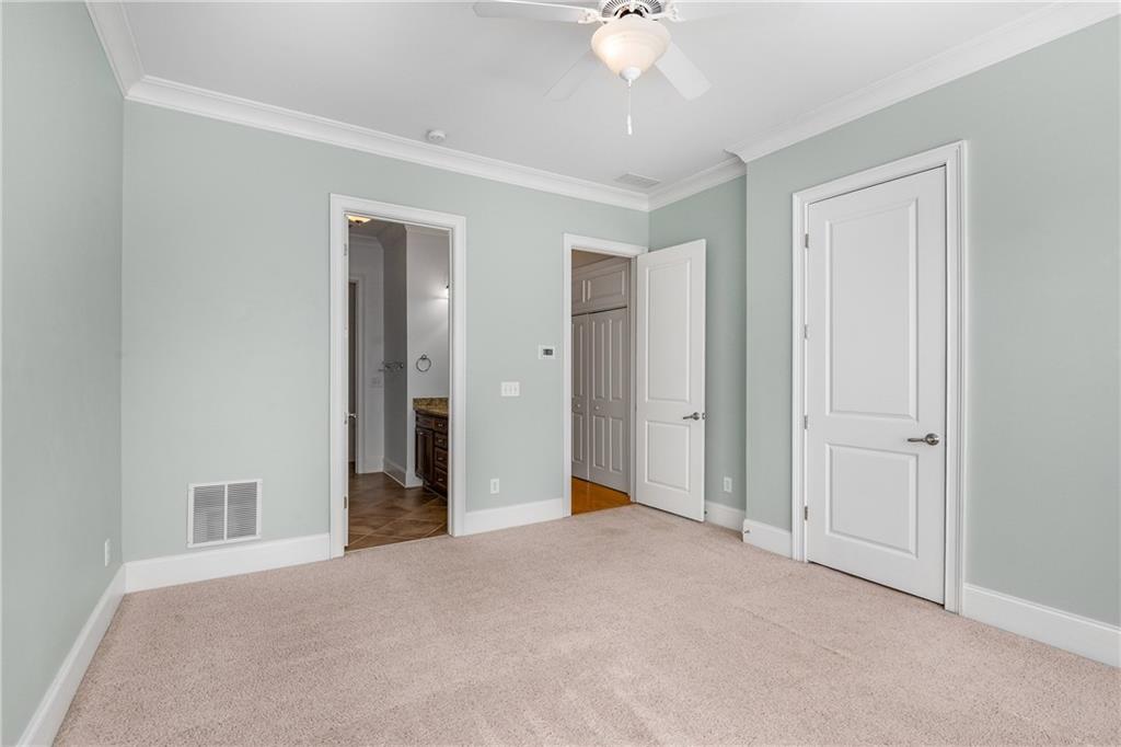 Located in a gated community, this beautifully designed townhome offers space, style, and incredible convenience. The open main level features a chef’s kitchen with granite countertops, stainless steel appliances, and a large island, flowing seamlessly into a light-filled great room with gas fireplace, built-ins, and wine rack. French doors open to a spacious deck—perfect for entertaining or relaxing. Upstairs, the oversized primary suite boasts soaring ceilings, a spa-like bath with separate tub and shower, and a custom California-style closet. A secondary bedroom with en-suite bath adds flexibility, while the terrace-level room, with full bath, makes an ideal office or guest space. A two-car garage and unbeatable location, just across from Briarwood Park, complete this exceptional home.