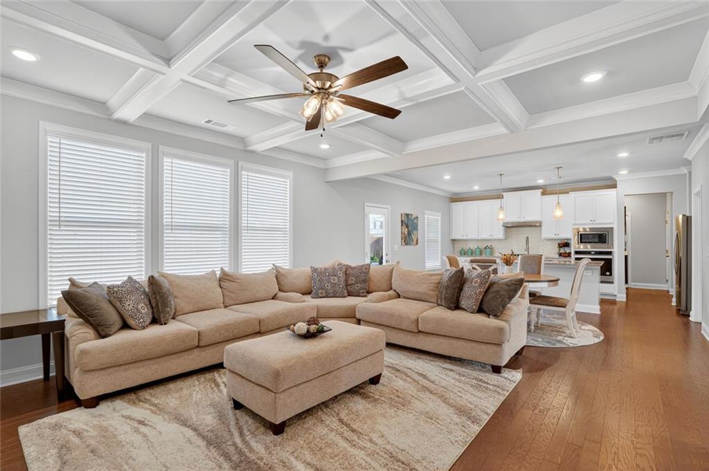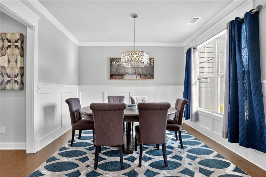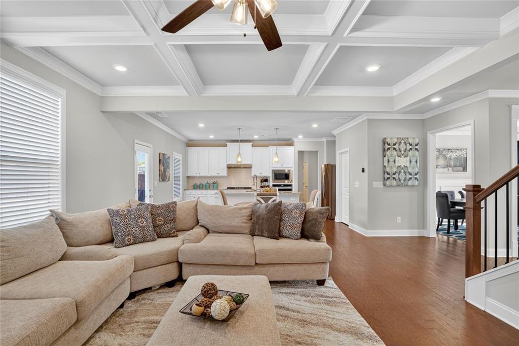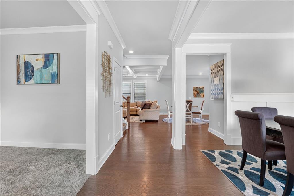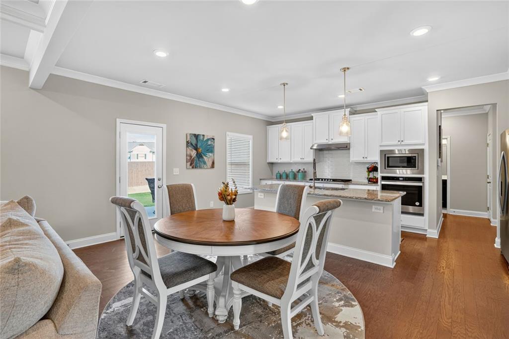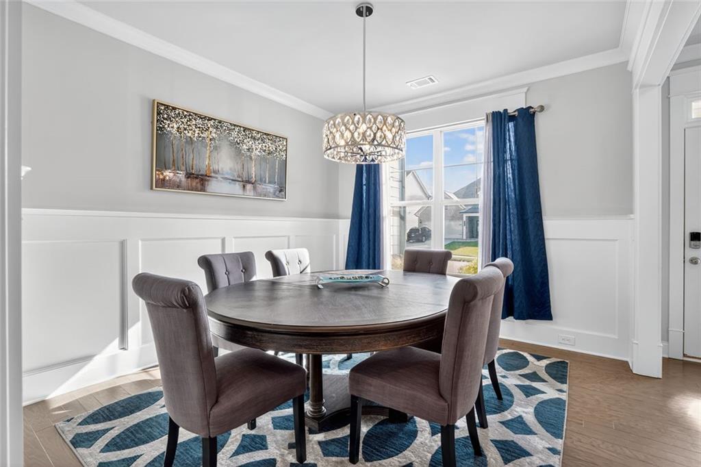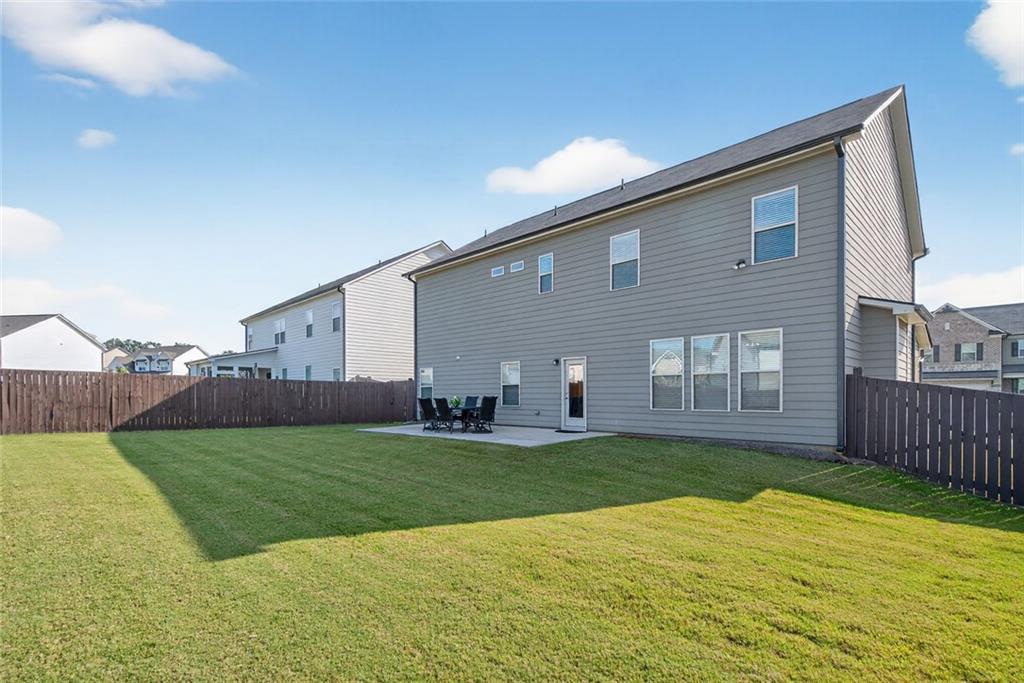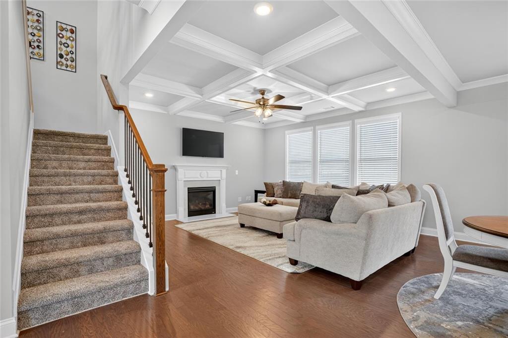 SELLER PAID CLOSING COSTS NEGOTIABLE! This gorgeous move in ready and like new home for sale in Flowery Branch welcomes you with warmth and character! Facing East, you'll enjoy the abundance of natural light flowing through this impeccable home. Step inside to an elegant entrance foyer with a formal living and dining room adjacent. The versatile living room is highlighted by a custom accent wall with detailed millwork and designer paint, making it a perfect space for a home office or study. A glamorous formal dining room with wainscotting is ready for your next dinner party. Hardwood floors flow effortlessly from the foyer into the kitchen and family room, where classic coffered ceilings and a warm fireplace set a welcoming tone. The family room opens to a chef's kitchen, featuring a large center island with granite countertops and chic white cabinets that complement the elegant millwork throughout. A guest bedroom and a full bath complete the convenient main level. Step outside to the oversized patio and a well-manicured, level, fenced backyard; an ideal spot for enjoying a cup of tea in the morning or watching the sunset in the evening. Upstairs, a spacious open loft provides the perfect space for a media room, workspace, or play area. Retreat to the very comfortable master suite, which boasts elegant trey ceilings and a luxurious spa-like bath with an oversized shower and built-in shelving. The roomy master closet offers plenty of space. Two additional bedrooms and a full bath complete the upper level. Located in Lancaster, a lively neighborhood with a community pool, this home offers easy access to shopping, dining, and I-985. You're also just minutes from popular area attractions, including the Mall of Georgia, Chateau Elan, and Lake Lanier Islands. Don't miss the chance to own this lovely home in a great location and neighborhood!