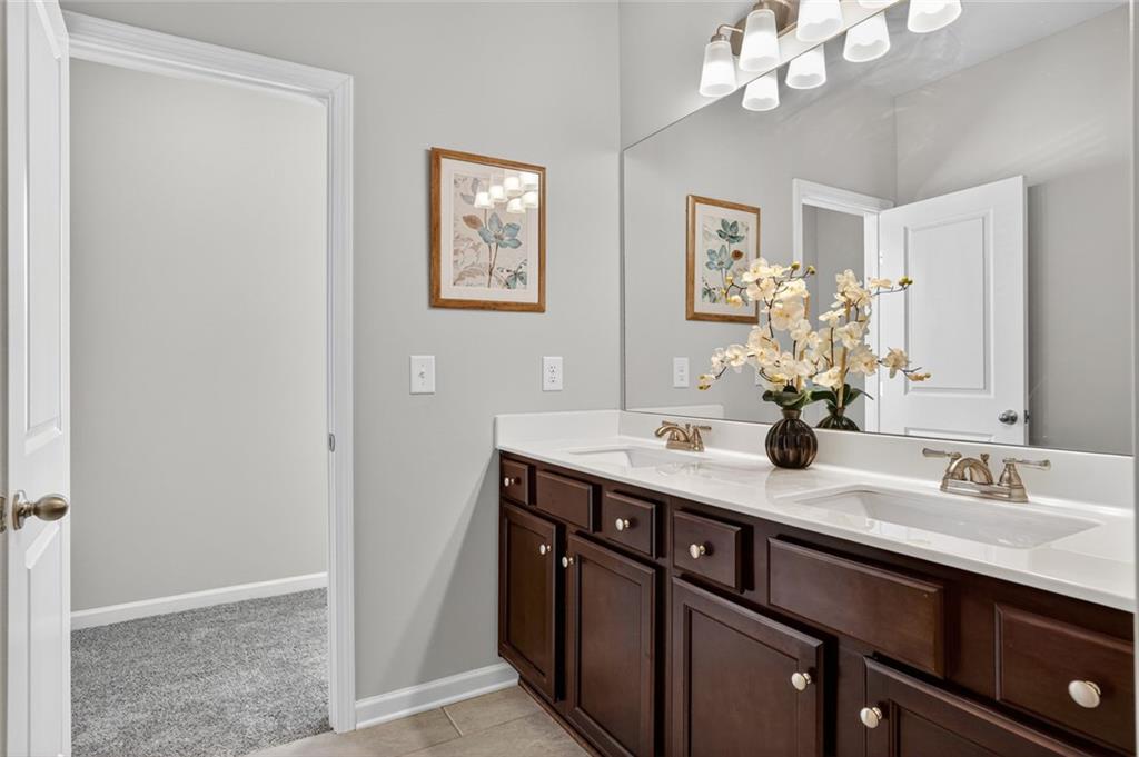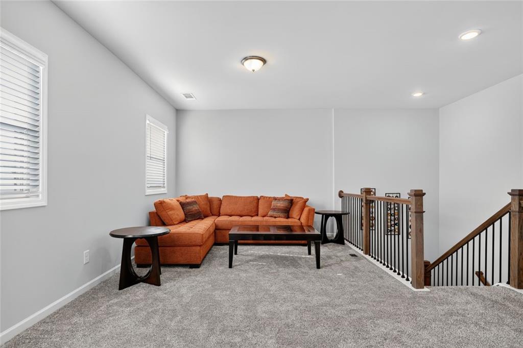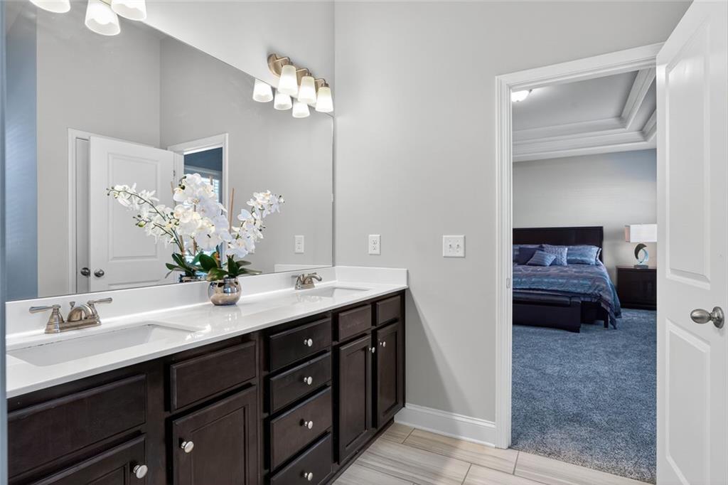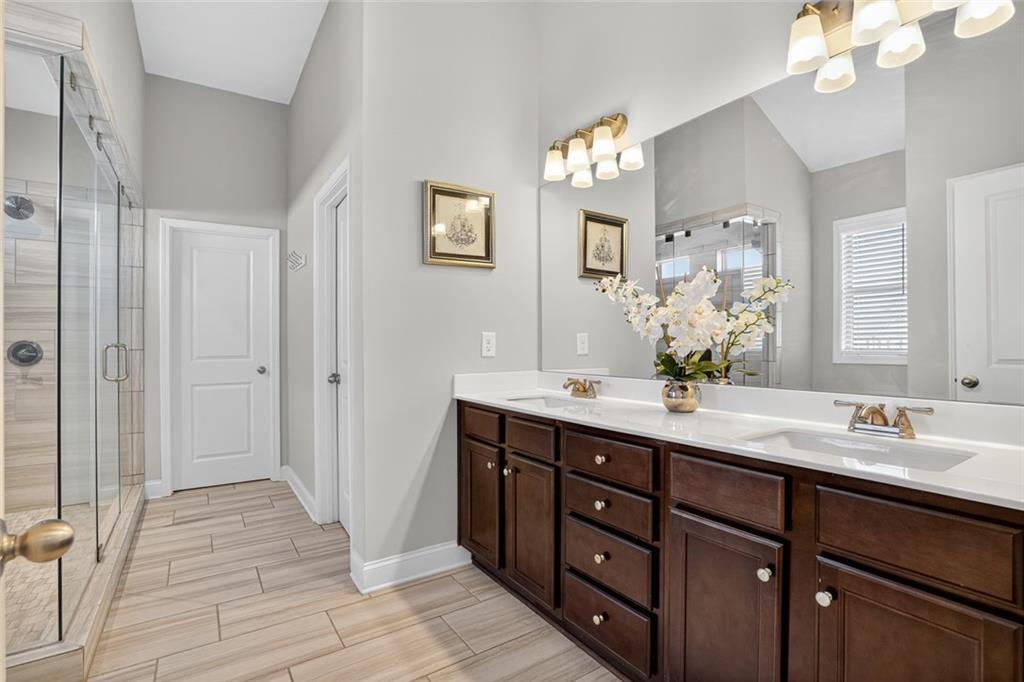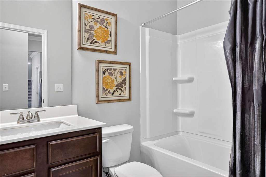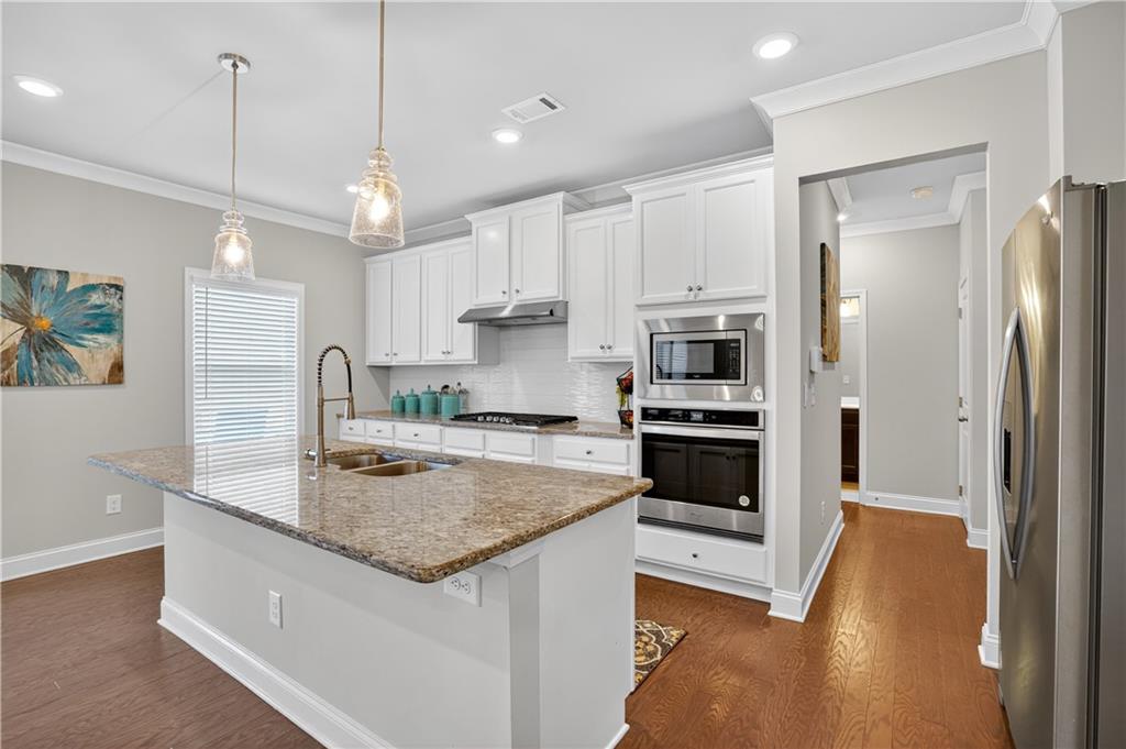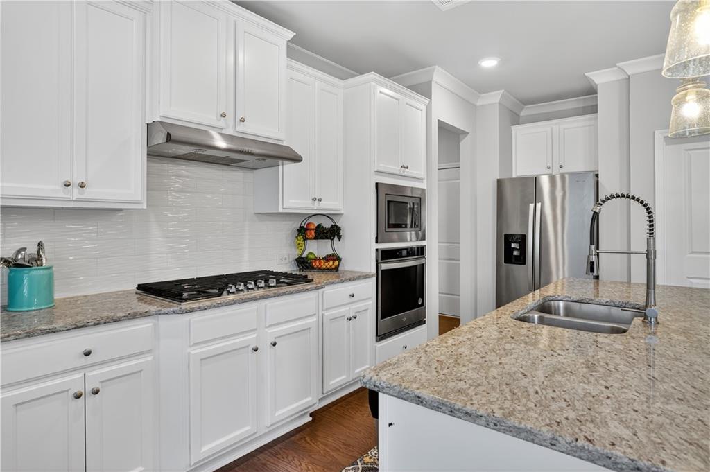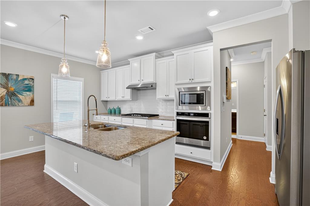 SELLER PAID CLOSING COSTS NEGOTIABLE! This gorgeous move in ready and like new home for sale in Flowery Branch welcomes you with warmth and character! Facing East, you'll enjoy the abundance of natural light flowing through this impeccable home. Step inside to an elegant entrance foyer with a formal living and dining room adjacent. The versatile living room is highlighted by a custom accent wall with detailed millwork and designer paint, making it a perfect space for a home office or study. A glamorous formal dining room with wainscotting is ready for your next dinner party. Hardwood floors flow effortlessly from the foyer into the kitchen and family room, where classic coffered ceilings and a warm fireplace set a welcoming tone. The family room opens to a chef's kitchen, featuring a large center island with granite countertops and chic white cabinets that complement the elegant millwork throughout. A guest bedroom and a full bath complete the convenient main level. Step outside to the oversized patio and a well-manicured, level, fenced backyard; an ideal spot for enjoying a cup of tea in the morning or watching the sunset in the evening. Upstairs, a spacious open loft provides the perfect space for a media room, workspace, or play area. Retreat to the very comfortable master suite, which boasts elegant trey ceilings and a luxurious spa-like bath with an oversized shower and built-in shelving. The roomy master closet offers plenty of space. Two additional bedrooms and a full bath complete the upper level. Located in Lancaster, a lively neighborhood with a community pool, this home offers easy access to shopping, dining, and I-985. You're also just minutes from popular area attractions, including the Mall of Georgia, Chateau Elan, and Lake Lanier Islands. Don't miss the chance to own this lovely home in a great location and neighborhood!