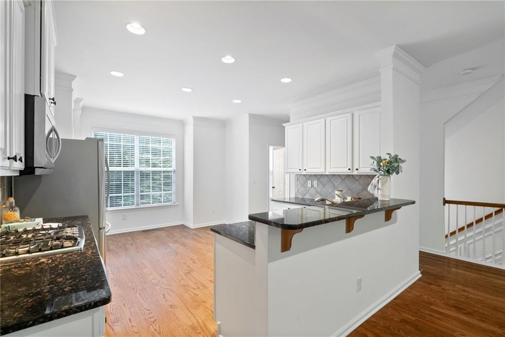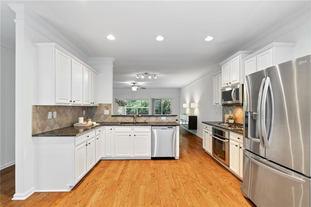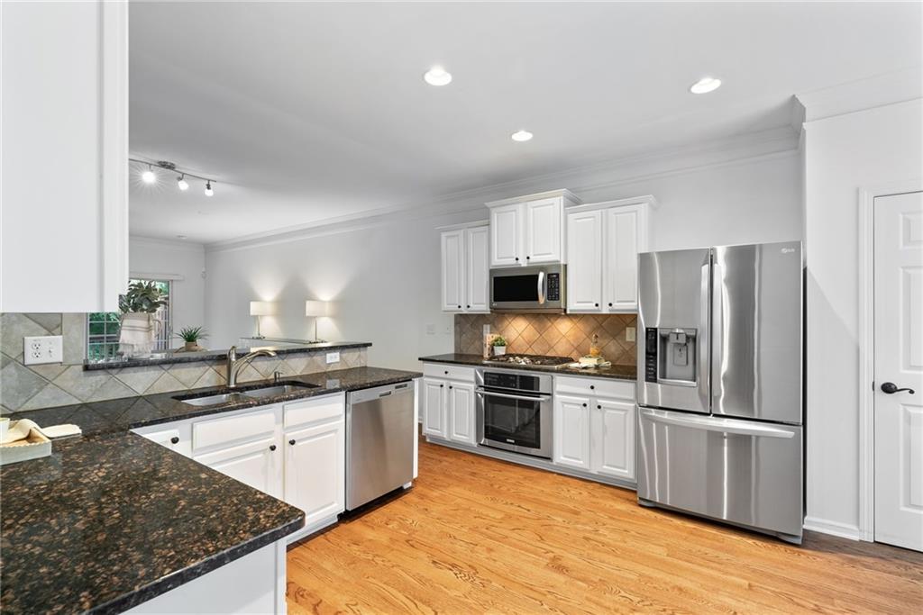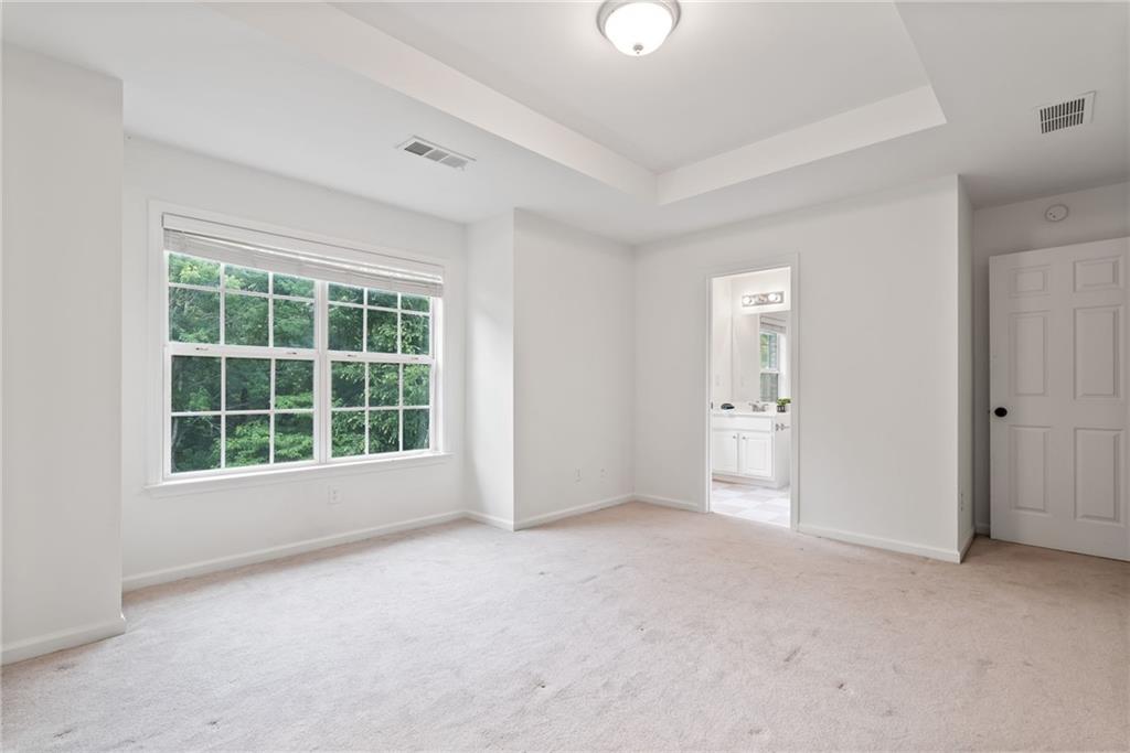 Updated 3-bedroom, 3.5-bath townhome in the gated Cambridge community offers the perfect blend of comfort, convenience, and style.With brand-new carpet, an open layout, and private outdoor space, it’s ready for you to call home. Step inside to hardwood floors and light-filled living area that flows effortlessly into the updated white kitchen—complete with granite countertops, stainless steel appliances,and a breakfast bar for casual dining or entertaining. Upstairs, the spacious primary suite feels like a retreat with tray ceilings, a walk-incloset, and a spa-inspired bath featuring dual vanities, a soaking tub, and a separate shower. Each secondary bedroom has its own privatebath, making this home an ideal choice for guests, roommates, or a work-from-home setup. Laundry is conveniently located upstairs, too.The terrace level adds even more flexibility, with a private bedroom, full bath, and direct access to the back of the townhome—perfect foran office, guest suite, or media room. Enjoy your morning coffee or evening unwind on the private deck with peaceful, tree-lined views andno backyard neighbors. Additional highlights include a one-car garage, secure gated entry, and unbeatable proximity—just one mile fromMorgan Falls Park and minutes from the Chattahoochee River, GA-400, shopping, dining, and trails. Low-maintenance living in a primeSandy Springs location—this home checks all the boxes for first-time buyers, busy professionals, or anyone looking for conveniencewithout compromise.