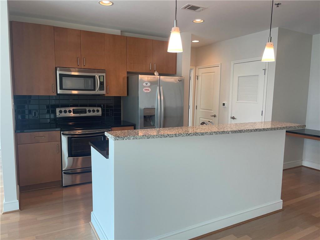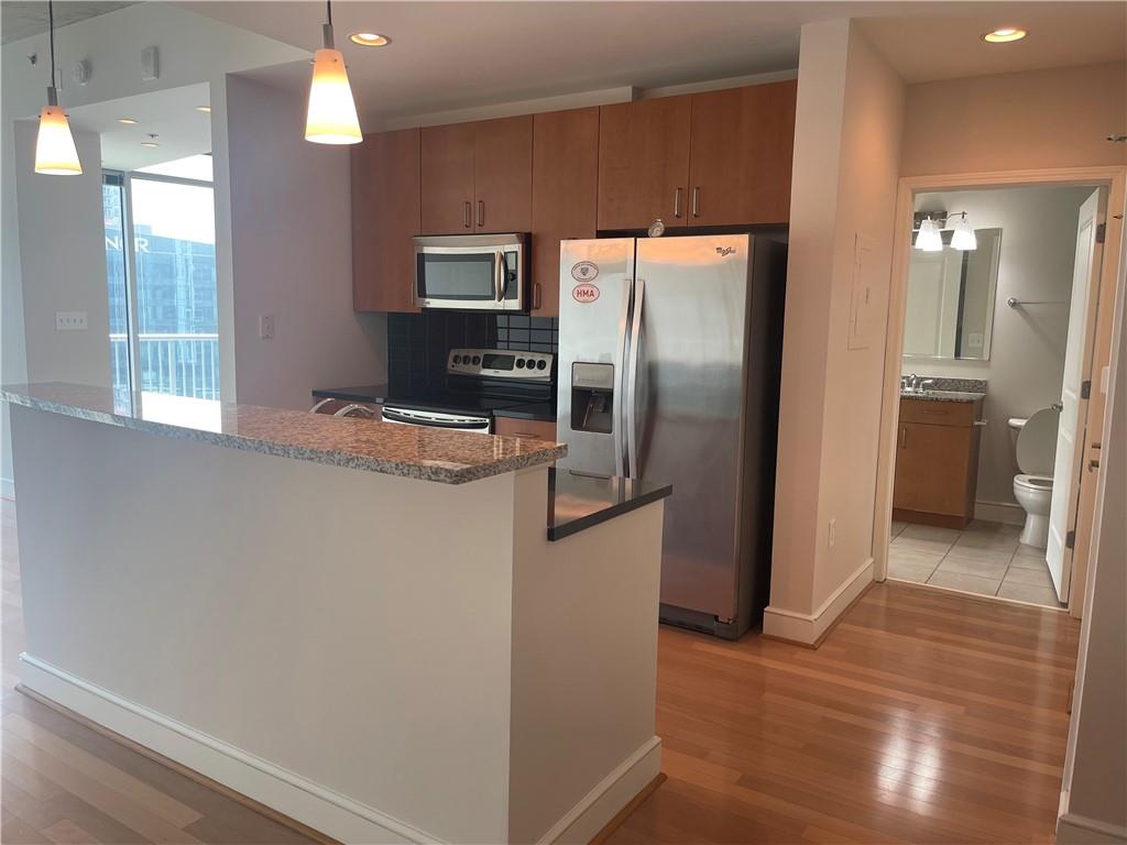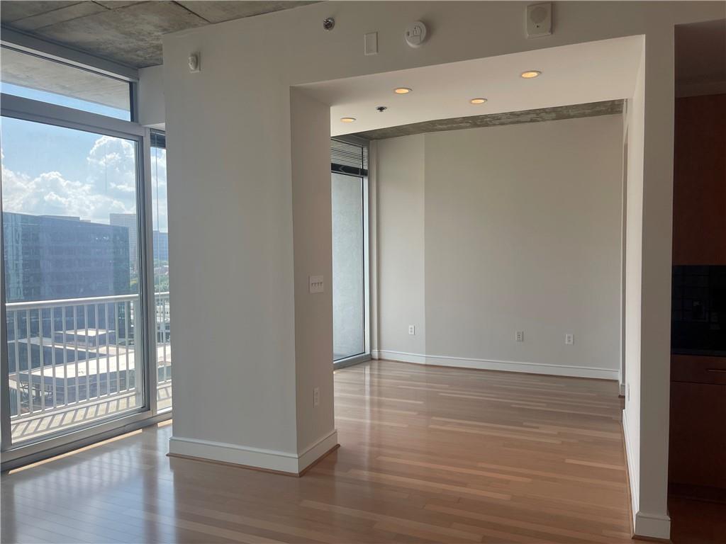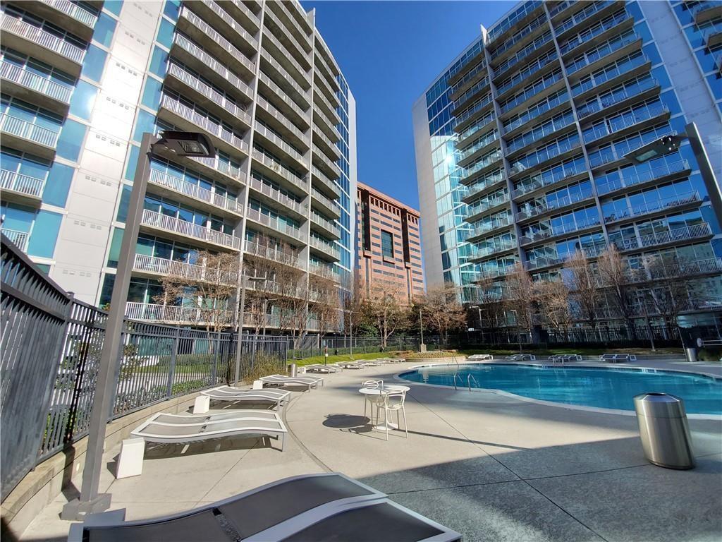 Luxury 1 Bedroom Condo at Plaza Midtown! Walkable to everything! Plus 1 Parking Space Included. This stunning one bedroom, one bath features hardwoods throughout, fresh paint and ample natural lighting. The kitchen showcases gorgeous granite countertops, stainless steel appliances, built in desk can also be used as bar area with views into the living room. From the living room step out onto your huge balcony to enjoy the fall breeze and amazing views of the city! Bedroom features double closets with floor length mirrors, floor to ceiling windows and access to the bathroom. Enjoy the Intown lifestyle in one of the largest units in Plaza Midtown close to bars, restaurants, (J Christopher's, Marlowe's Tavern, Park 27 Korean BBQ) Conveniently located near MARTA, GA TECH, Trolley Line, The Beltline and Piedmont Park. Take the elevator directly to Publix, located just below the condominium. Sleek Resort Style Amenities include, 24/7 Concierge, Pool, Outdoor Grill, Outdoor Dining + Lounge Seating, Outdoor Firepit, Fitness Center, Club Room. EASY WALK to Marta, Shopping, Dining, Nightlife and Beltline!