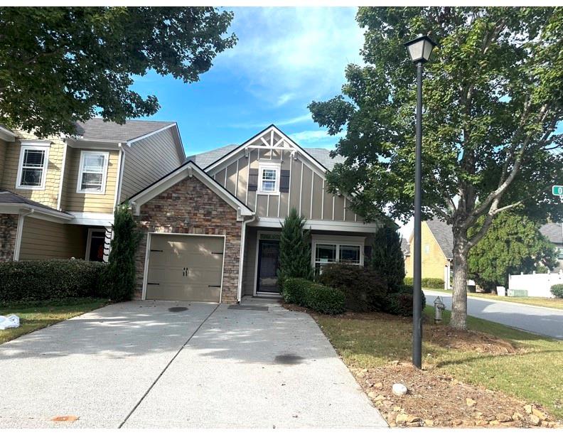Charming bungalow style craftsman home located on a corner lot in Highland Pointe at Oakmont. Spacious living room with soaring ceilings and natural light throughout. Separate dining room.Owner's suite on main features tray ceiling and dual access walk-in closet, en suite bathroom with soaking tub, separate shower, double sinks and another large walk-in closet. Trash collection is included in the rent. Direct access to GA400 and conveniently located close to shopping and dining in Dawsonville including the GA400 outlet mall. 20 mins to Dahlonega.
