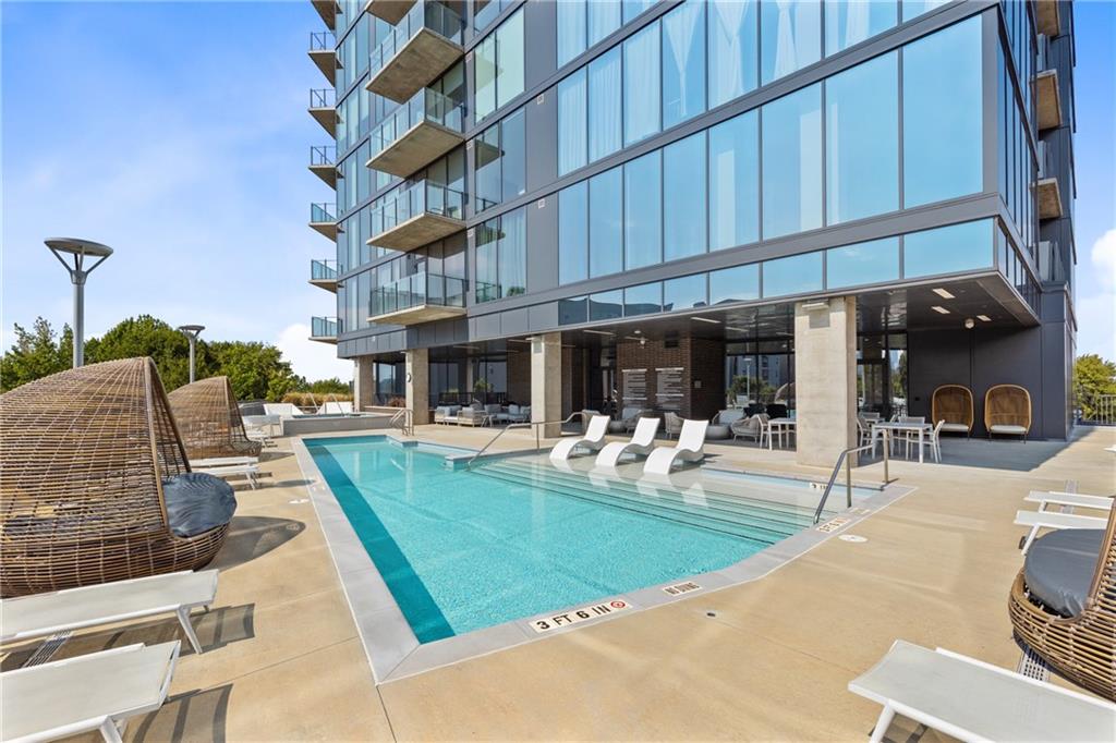 Welcome to urban elegance in the heart of West Midtown! This rare corner unit in the coveted Seven88 high-rise offers sweeping city views and premium finished throughout. Floor-to-ceiling windows that flood the space with natural light and showcase panoramic views of the skyline. A bright open floor plan with wide-plank hardwood flooring and designer touches. Gourmet Kitchen with high-end stainless steel appliances, waterfall quartz countertop island, tile backsplash and soft close drawers/cabinets. Two generously sized master suites each with private baths and walk-in closets. Luxury amenities including 24/7 concierge and security, a fitness center, clubroom, pool & hot tub, plus a covered, deeded two-car parking with EV charger availability. Last but not least it comes with a permanent leasing permit from HOA.