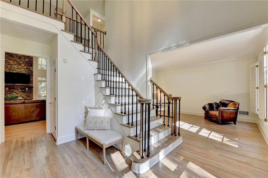 Wow! This home is truly a masterpiece on a quiet cul de sac in the heart of Johns Creek… It has been impeccably maintained and wonderfully updated. You will fall in love with the open flow of the home and its dramatic features. Refinished hardwoods grace the main level along with freshly painted walls, new designer lighting and new stair spindles. The huge two-story family room has such a presence with the dramatic floor to ceiling stacked stone fireplace and custom wood mantle. You are steps away from the oversized custom kitchen with gorgeous cabinets, pull out drawers, large pantry, abundant storage, under counter lights, pot filler as well as massive island with lighted glass cabinetry that showcases your treasures. The eat in kitchen enjoys so much natural light and overlooks the private backyard and incredible deck. You will absolutely adore spending time on TWO spectacular decks which were rebuilt in 2019 and re-stained in 2025. The main level deck offers sooo much space to relax and entertain. Imagine the parties you can host here! The second deck is off the terrace level. Upstairs you will enjoy an oversized primary suite with sitting area and fireplace, large bath and spacious closet. Three additional secondary bedrooms and two full baths round out the second floor. The terrace level boasts new LVP floors, special acoustic tiles in the media room, full bath with quartz counters and of course the beautiful lower deck. The home features NEW windows across the back of the home, gutter guards, irrigation in the front, LED lighting throughout, two 50 gallon water heaters (2019), newer siding back of home, and NEW DRIVEWAY (2024) It is RARE to find a home as move in ready as this one!