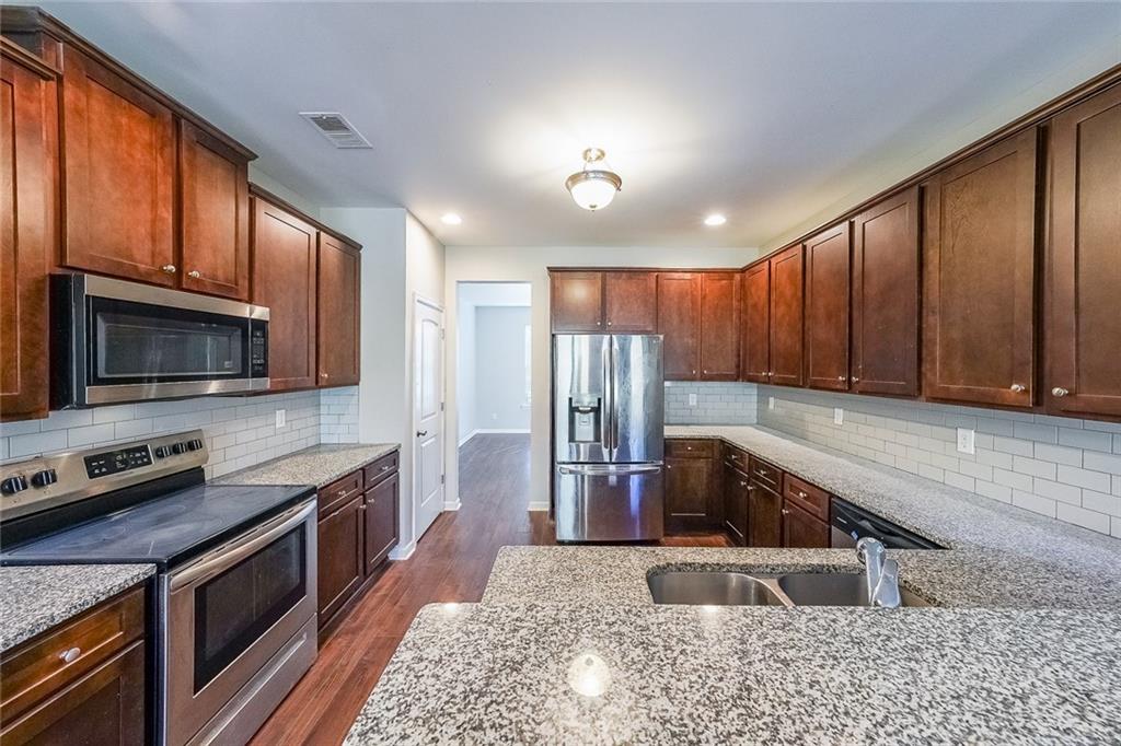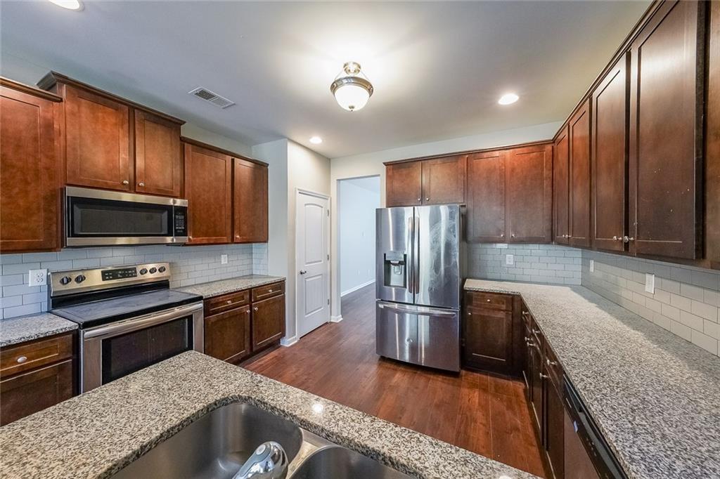 Welcome to your new home in Lawrenceville's sought-after Silver Ridge! This stunning 5-bedroom, 3-bathroom traditional residence is perfect for comfortable living. Step inside and be greeted by beautiful laminate hardwood floors on the main level. The bright family room features a cozy gas fireplace, perfect for gatherings, while the modern kitchen is a chef's dream with stainless steel appliances and granite countertops. A versatile bedroom and full bath on the main level offer ideal flexibility for guests or a home office. Upstairs, find four more spacious bedrooms and the laundry room. The master suite is your private oasis, featuring a walk-in closet and an ensuite bath with a separate soaking tub and shower. You'll love the convenient location near restaurants, shopping, and I-85. Don't miss this incredible opportunity. Schedule your showing today! Agent Owner Property