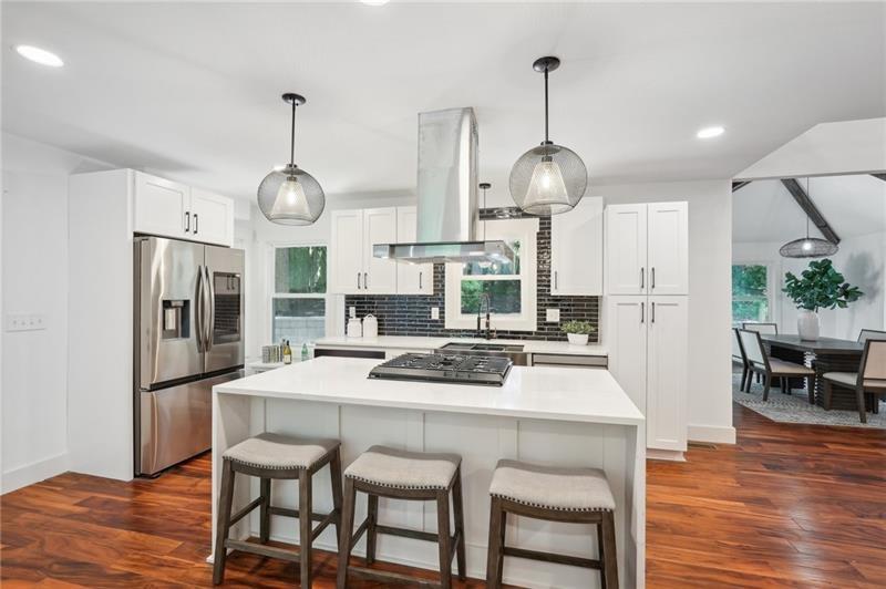 Priced under appraised value! Nestled within a prime location, this magnificent three-story contemporary marvel boasts six bedrooms and five bathrooms, epitomizing luxury and elegance. Meticulously redesigned from the ground up, every facet of this home exudes sophistication and charm. On the main level, 3 spacious bedrooms await, including one with its own ensuite. Entertain in style in the living room, dining room, and formal dining area adorned with cathedral ceilings. The kitchen is a culinary masterpiece, featuring a stunning waterfall-style quartz countertop, complemented by a beautifully designed vented hood and tile backsplash. Upgraded appliances enhance both form and function, while the striking quartz kitchen island beckons guests to gather and indulge. Ascending to the top level reveals the lavish primary suite, complete with an expansive custom closet and a spa-like retreat bathroom boasting a separate soaking tub and exquisitely tiled shower. Two other generously sized ensuite bedrooms await. Additionally, a separate office adjacent to a loft and laundry room add functionality and ease to this level. The basement, or third level, offers further space for relaxation and recreation, including a game room/den and wine cellar, along with an additional laundry room. Craftsmanship and attention to detail permeate every corner, ensuring that every member of the family and every guest discovers tranquility and contentment within these walls. Convenient access to I-285/85, Mercer University, Emory, CDC, Arthur Blank Hospital, local schools, shopping, and the Mary Scott Nature Park. This residence is a must-see, a true embodiment of modern luxury living.