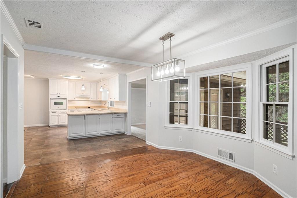- KitchenBreakfast Room, Cabinets White, Eat-in Kitchen, Pantry, Solid Surface Counters