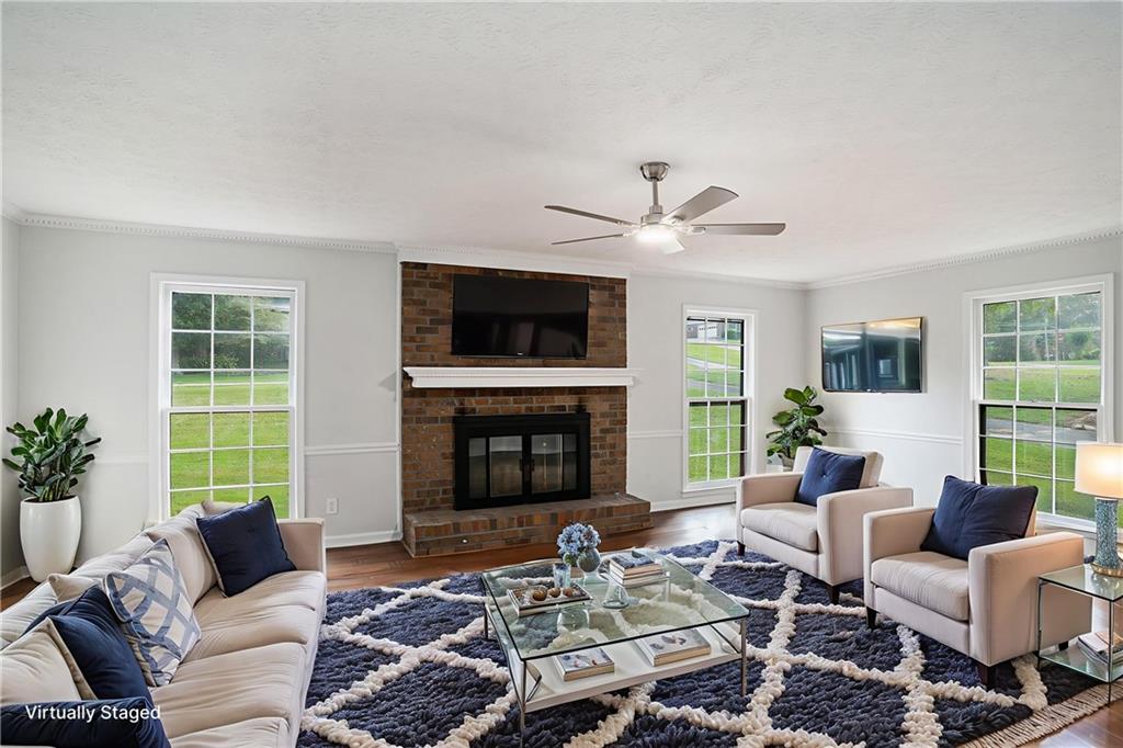Welcome to this charming 3-bedroom, 2.5-bath ranch home that perfectly blends comfort and style. Step inside to find an inviting living room with a cozy fireplace and modern lighting that sets the tone throughout. The separate dining room is ideal for hosting, while the all-white kitchen with a view to the breakfast room and an eat-in nook makes every meal a delight. A bright sunroom offers the perfect spot to unwind year-round. The oversized master suite boasts a private en-suite, and the additional bedrooms are generously sized for comfort. Outside, enjoy a spacious front yard and a large backyard with room to entertain, garden, or simply relax. This home is move-in ready and designed for everyday living with timeless charm.