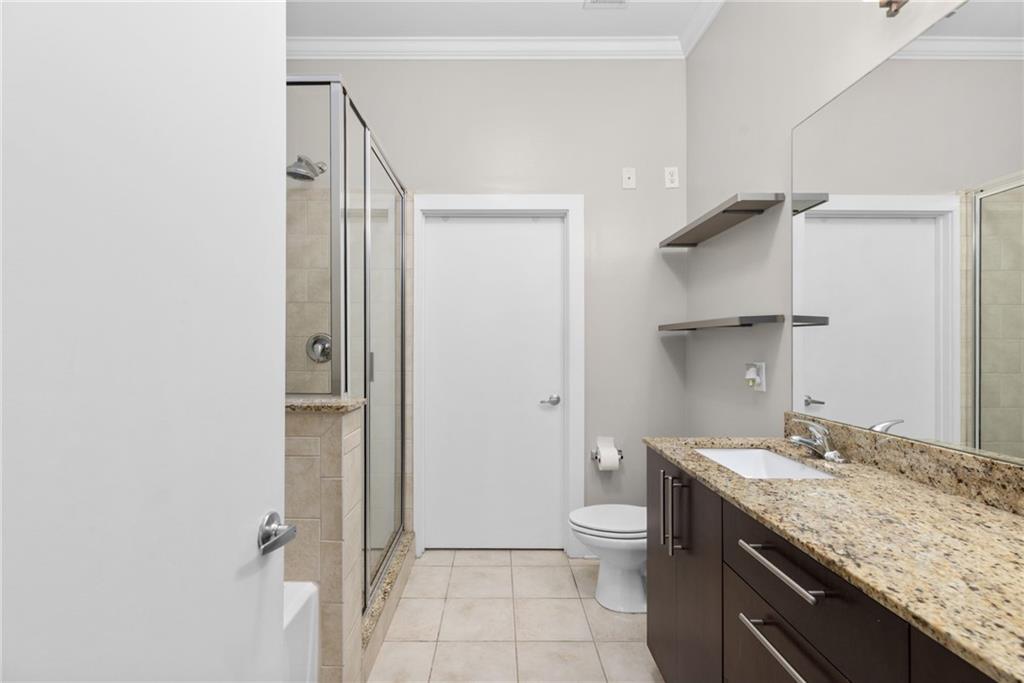 Inman Park living at its best! Rarely available two bedroom condo for lease with oversized covered porch and open patio overlooking the pool with direct private gate access. The bright open floor plan living area creates a sense of spaciousness and flow. Gourmet kitchen with granite counters, stainless steel appliances, gas range, and tile backsplash. Additional nook that is perfect for an office or dining room. Primary bedroom features a double vanity and separate shower and tub. Second bedroom also has its own ensuite bathroom (shower only). Large walk-in closets with custom shelving in each bedroom. Two covered parking spaces and storage unit included. Community amenities include a saltwater pool with gas grill area, fitness center and community room. Just steps to the direct access point to the Beltline, many of Atlanta's top restaurants, and Krog Street Market! One pet will be considered (if a dog, must weigh 25lbs or less and no bully/bully mix breeds).