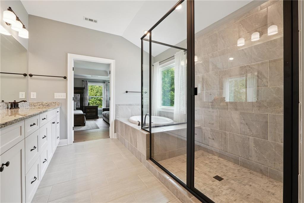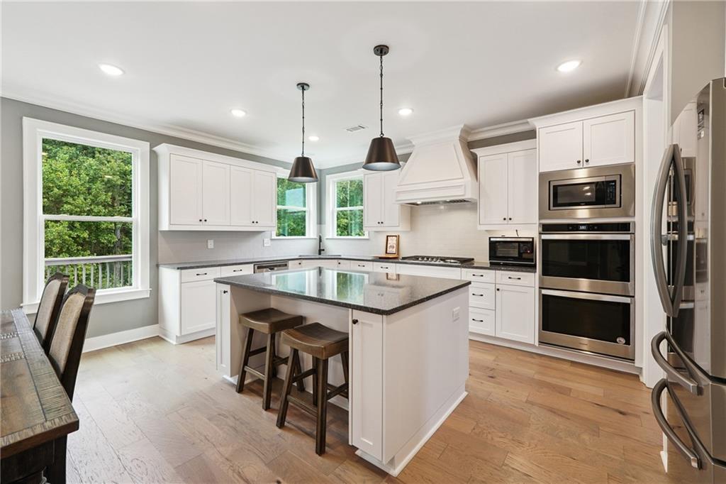 Limited time. $5,000 seller paid closing costs for contracts prior to 11/21/2025. Breathtaking custom craftsman estate with 3 fully finished levels in sought after Montebello community. Walk across the street to the Olympic pool, tennis/pickleball courts and clubhouse. Grand 2-story entry with custom double door entry with gleaming hardwood floors. Chef’s kitchen boasts granite countertops, crisp white cabinetry, an oversized island, and a hidden walk-in pantry, seamlessly flowing into the breakfast nook. Great Room impresses with coffered ceilings, custom built-ins, and a natural stone fireplace. A main-level guest suite with a full bath provides comfort and privacy for visitoMain level also offers a formal dining room and a private office. Upstairs, the owner’s suite is a true retreat, complete with a serene sitting area, spa-inspired bath, and a generous walk-in closet. Three additional bedrooms, two full baths, a media room, and a spacious laundry room complete the upper level. fully finished terrace level expands your lifestyle options—perfect for a home gym, game room, media lounge, or in-law suite—with walk-out access to a peaceful backyard. Additional highlights include a 2-car garage equipped with a Tesla EV charger, combining convenience and sustainability. Schedule your showing today!