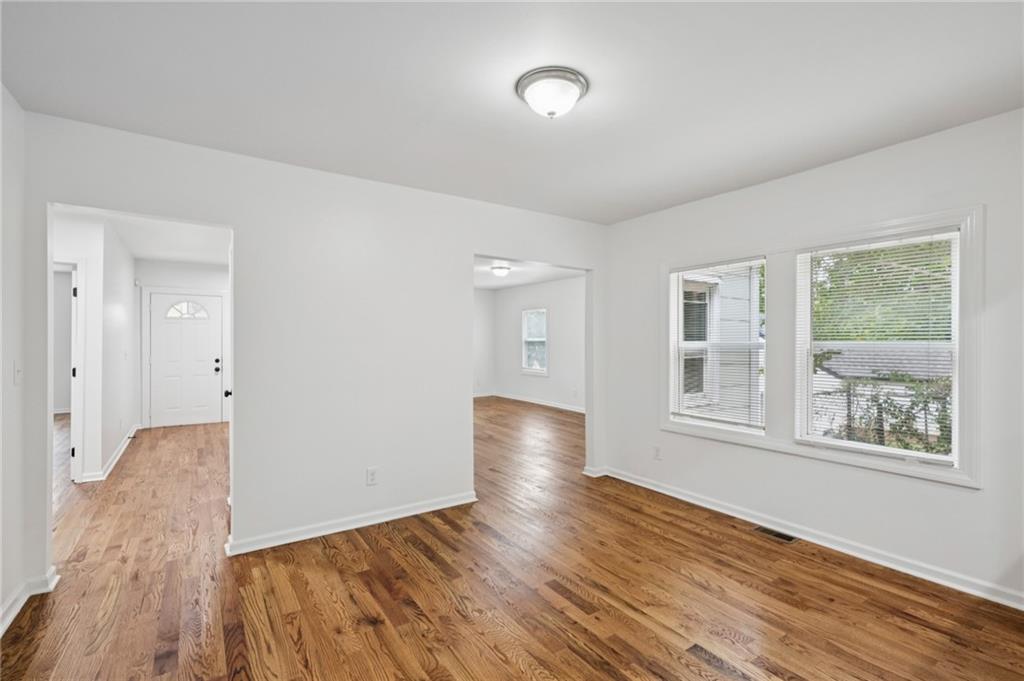Best deal in Jefferson Park! If you are tired of cramped apartments or houses with "cozy" rooms, this is the home for you. But before you step inside, imagine yourself relaxing on the front porch where you are perched high above the street taking in the lovely neighborhood view. Now, step inside to the entry foyer which provides access to the many different areas of the home. The first impressions you will have are of the beautiful, brand new, hardwood floors throughout the main level, as well as the freshly painted, light filled interior, thanks to the many double-paned windows. Decorating this home will be a blast because the possibilities, given the size of the rooms, are endless. The spacious living room with it's stately fireplace opens into the dining room which has a passthrough into the renovated kitchen complete with white Shaker cabinetry, granite counters and stainless-steel appliances. Off the kitchen, in the large laundry room, you have access to an expansive, flat and very private, fully fenced, back yard. The extra large primary bedroom with ensuite is located on the main level as is an apmle sized secondary bedroom along with a full bathroom off the hall. The upper level provides so many options as it is a self contained space with a living area, space for a kitchen to be added, a bedroom, large closet and a full bathroom. This space has new carpet and it's own private entry thanks to a separate set of stairs on the side of the home that leads to an upper deck. There is also a second driveway on the right side of the home which provides a level of autonomy to whoever occupies the space be it your inlaws, grown child or tenant. Tenant occupied would certainly make those mortgage payments easier...just sayin. The home also has a one-car garage and a partial basement with a large work bench and great storage.