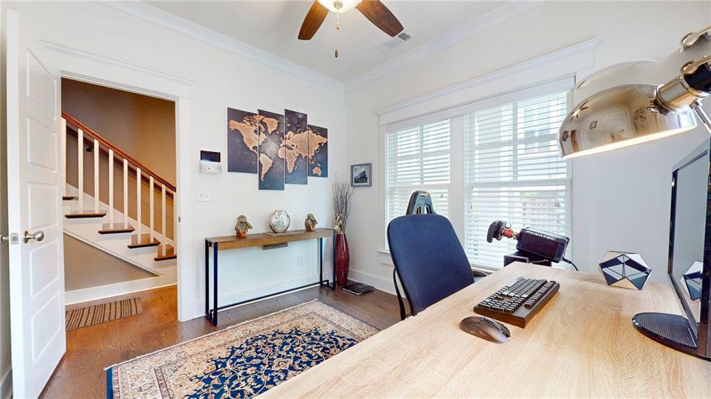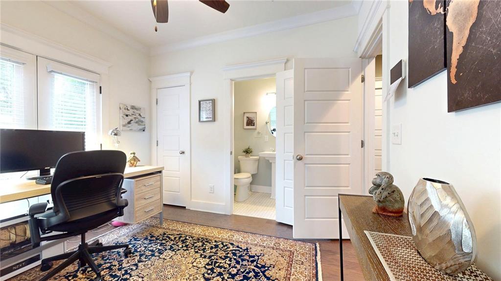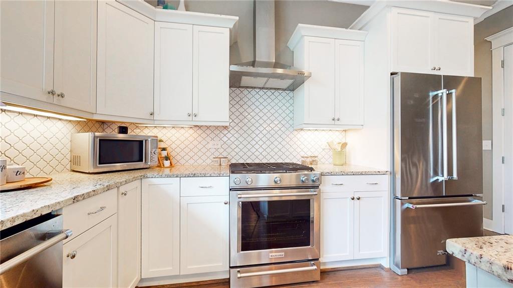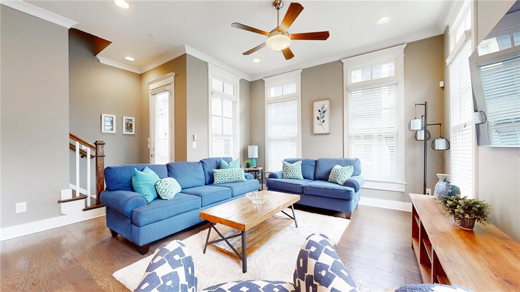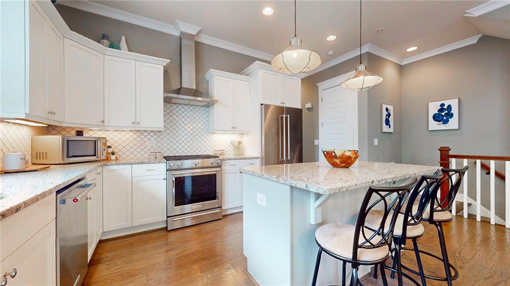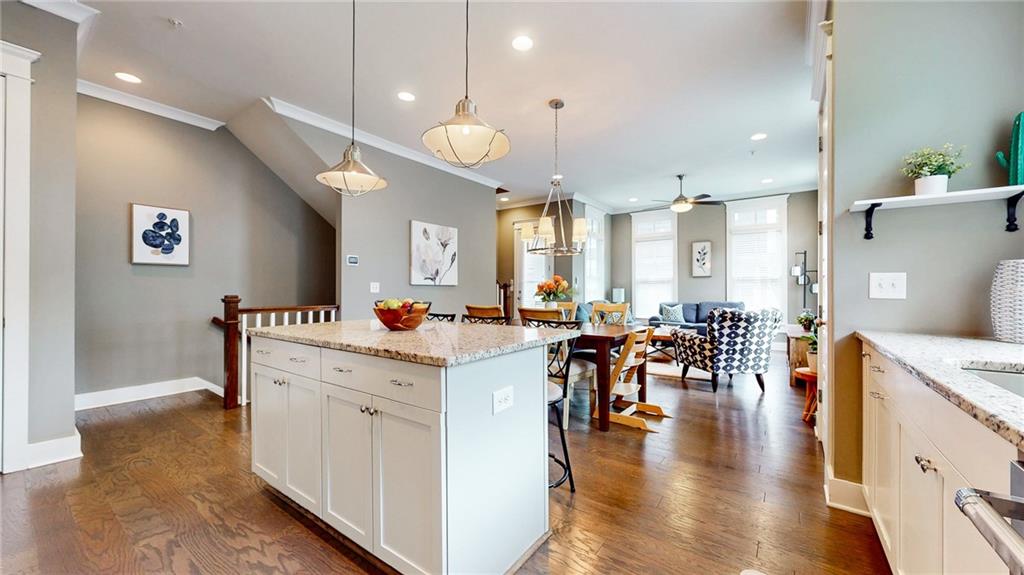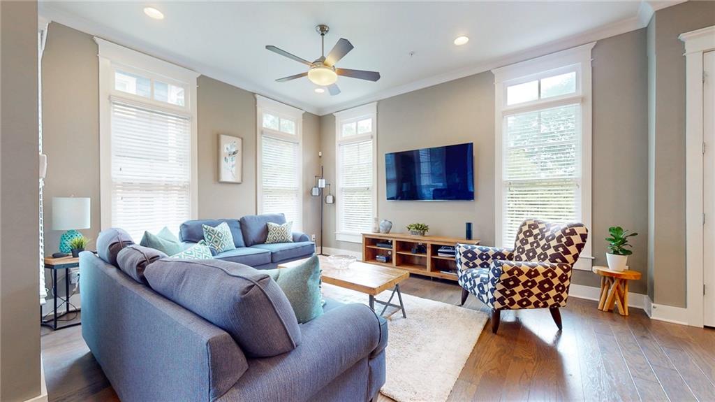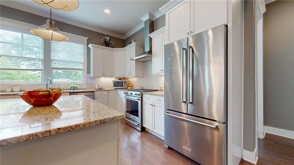 Check out the 3D virtual tour! This amazing home is just steps to the heart of Downtown Decatur, and offers the amazing City of Decatur school system. Walk to all the restaurants and shops you could want, plus easy access to MARTA. This immaculate home features 4 bedrooms and 4 full baths. The light-filled foyer and gleaming hardwood floors greet you with high ceilings and open floor plan including the living room, dining room and kitchen. The kitchen features granite countertops, stainless-steel appliances, large island with seating, and a large pantry. The living room features floor to ceiling windows looking out on the peaceful porch! The expansive primary suite features a cozy sitting area, vaulted ceilings, and a large walk-in closet with custom wood shelving. The ensuite full bath features a double vanity, glass shower and soaker tub. The upper floor has an additional bedroom that also features a full ensuite full bathroom. The serene covered front porch is the perfect place to enjoy your morning cup of coffee. There is also an upper balcony off the living room. The laundry room with storage shelving is conveniently located on the upper level. The 2-car garage has plenty of storage space and opens to the lower level. All kitchen appliances are included. HVAC replaced in 2024. Also walkable to Adair park, a dog park, schools, mega shopping, restaurants, Downtown Decatur and more! Convenient to CDC and Emory.