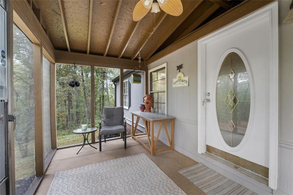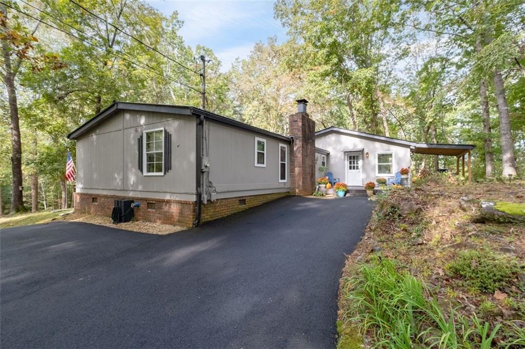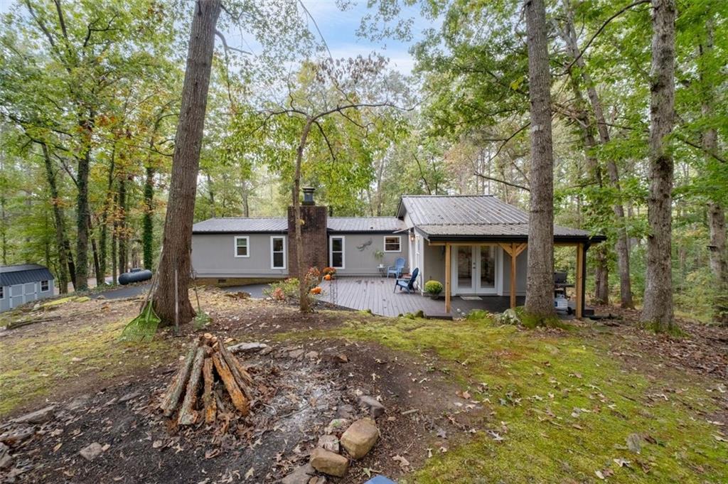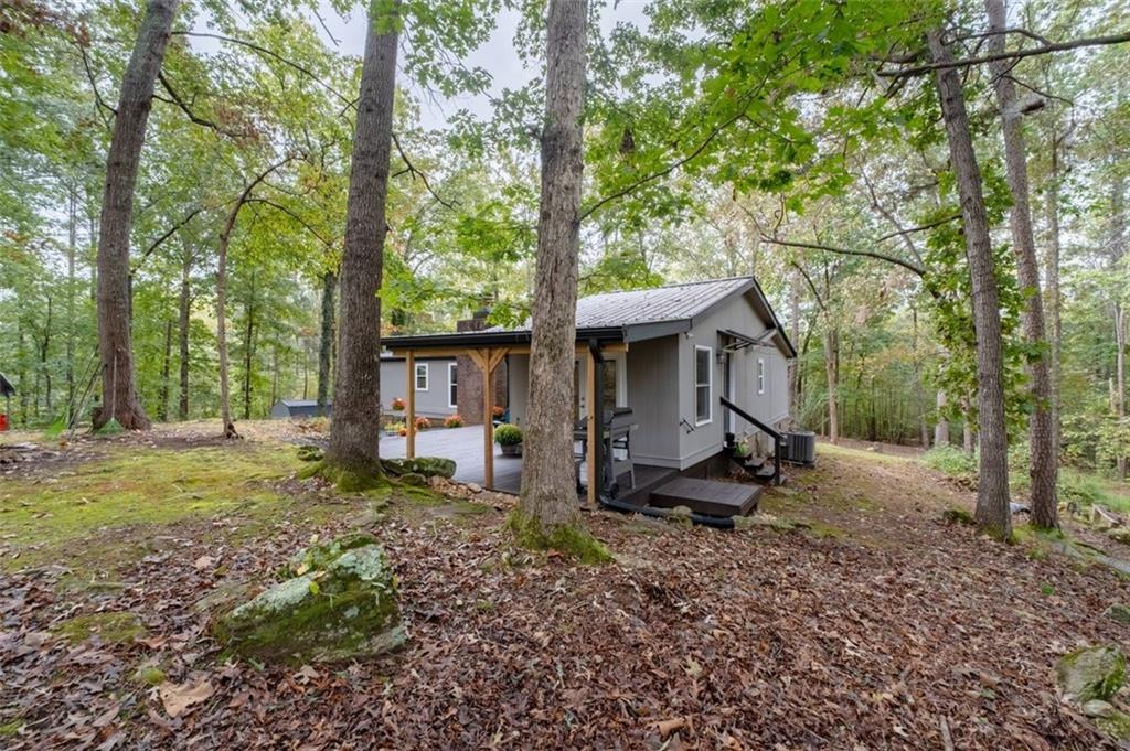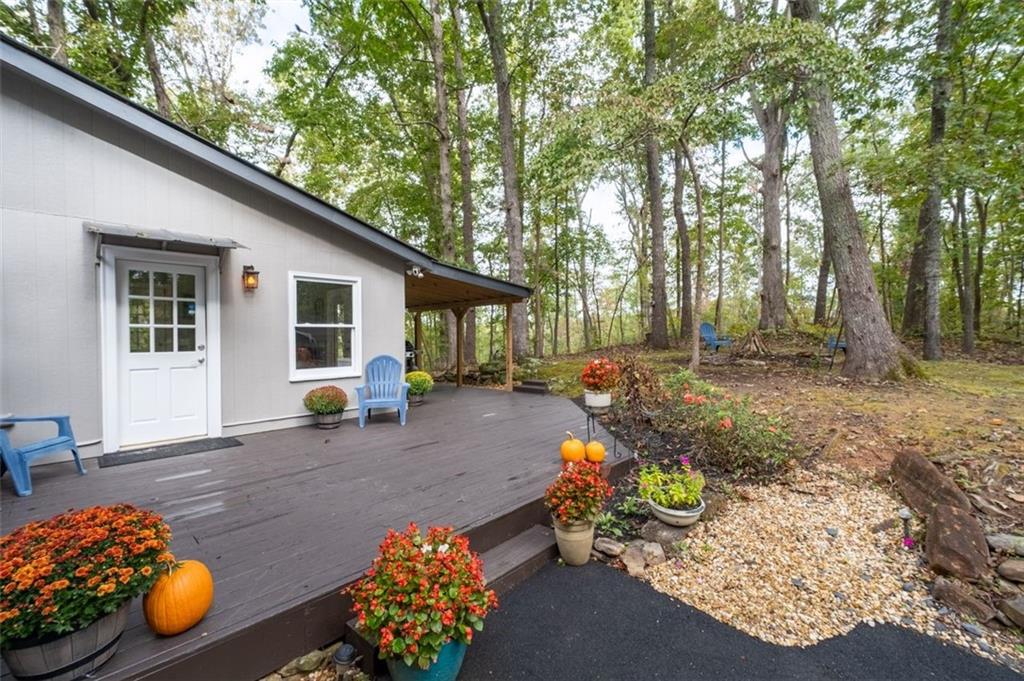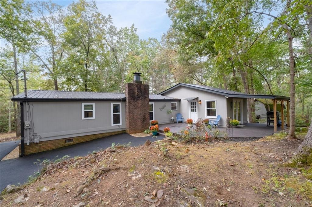 Priced below recent DS Murphy Pre List Appraisal. No HOA. 3 Gorgeous acres perfectly located in Dawson county, just over the Forsyth County line. Large mature wooded corner lot with Kelly Bridge road frontage. The long circular paved driveway has a 2023 Carport, 2023 Large Exterior Storage Building. The outside spaces are the BEST! It is up high enough to have an amazing breeze. Covered and screened front porch and a large back deck, partially covered area perfect for grilling. Its a beautiful place to enjoy friends around the firepit. It's private and It's perfect. The interior is equally as pleasing as the location and outdoor spaces. It has been recently renovated with, New Metal Roof, Gutters, New exterior and Interior Paint, New Flooring, new kitchen cabinets and the cutest coffee bar. There is a masonry wood-burning fireplace with wrought-iron double doors in the main room. Agent/Owner