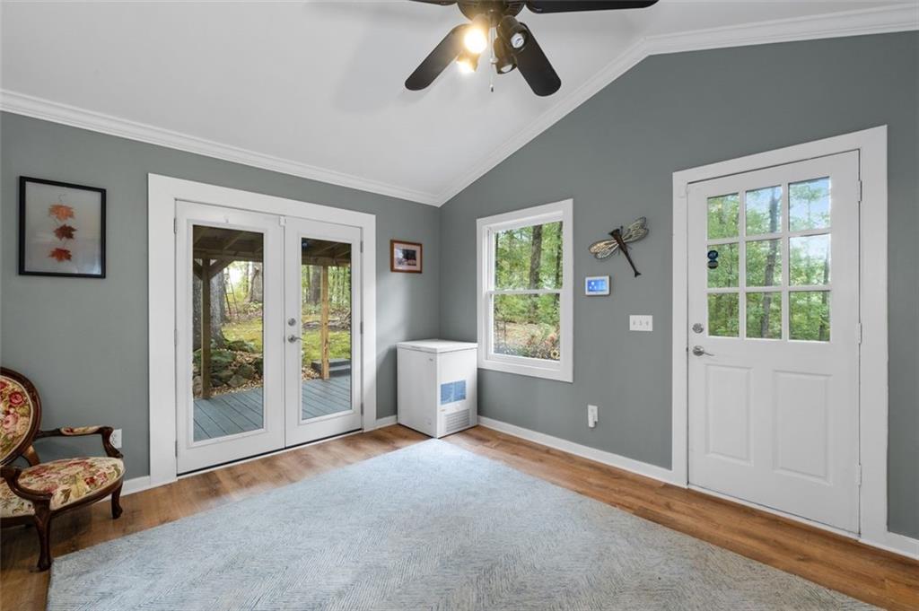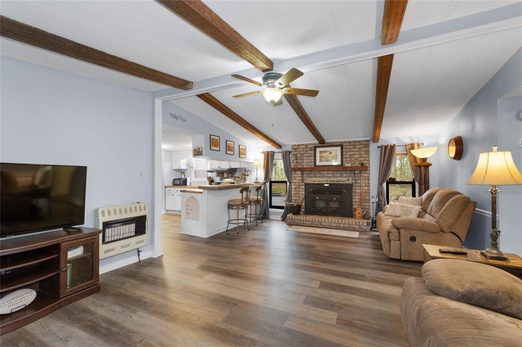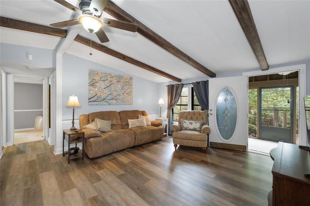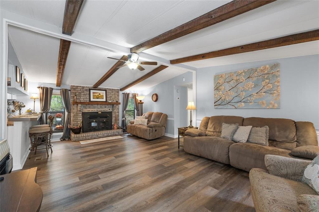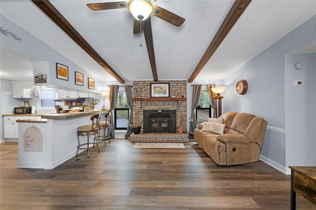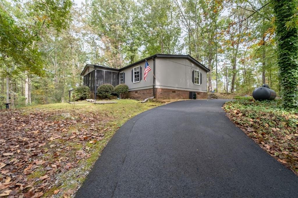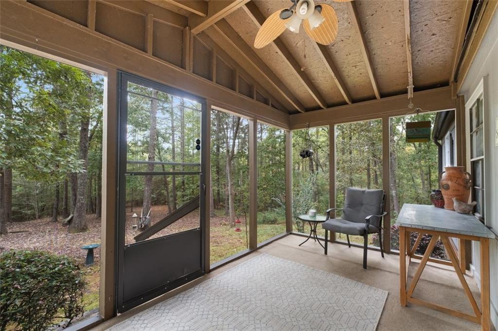 Priced below recent DS Murphy Pre List Appraisal. No HOA. 3 Gorgeous acres perfectly located in Dawson county, just over the Forsyth County line. Large mature wooded corner lot with Kelly Bridge road frontage. The long circular paved driveway has a 2023 Carport, 2023 Large Exterior Storage Building. The outside spaces are the BEST! It is up high enough to have an amazing breeze. Covered and screened front porch and a large back deck, partially covered area perfect for grilling. Its a beautiful place to enjoy friends around the firepit. It's private and It's perfect. The interior is equally as pleasing as the location and outdoor spaces. It has been recently renovated with, New Metal Roof, Gutters, New exterior and Interior Paint, New Flooring, new kitchen cabinets and the cutest coffee bar. There is a masonry wood-burning fireplace with wrought-iron double doors in the main room. Agent/Owner
