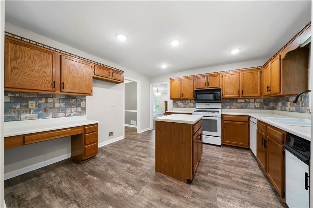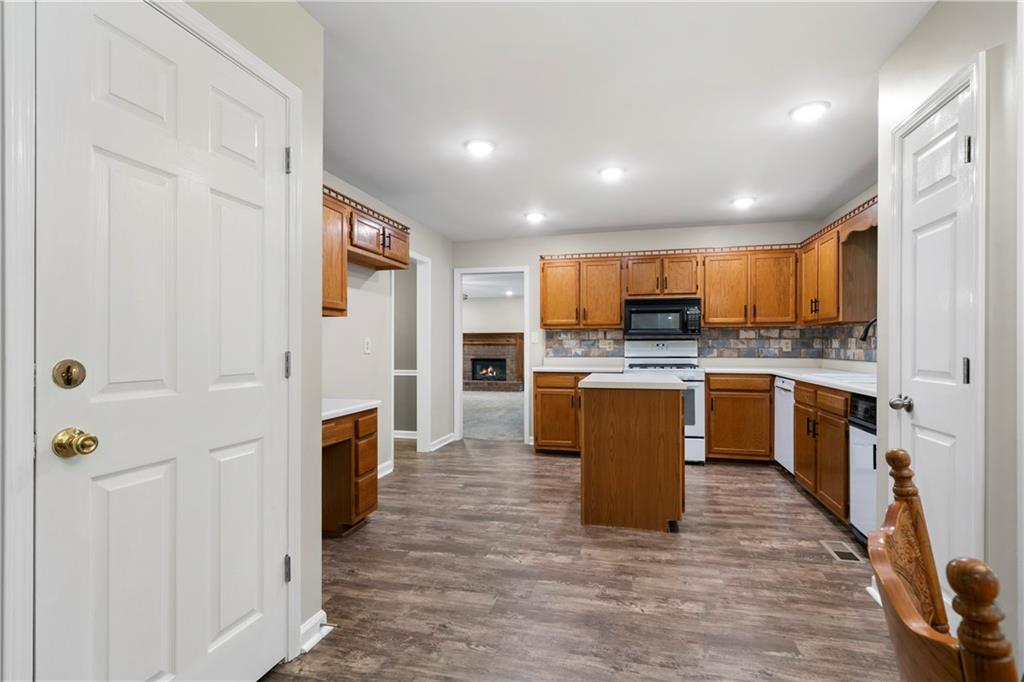 - KitchenCabinets Stain, Eat-in Kitchen, Kitchen Island, Laminate Counters, Pantry