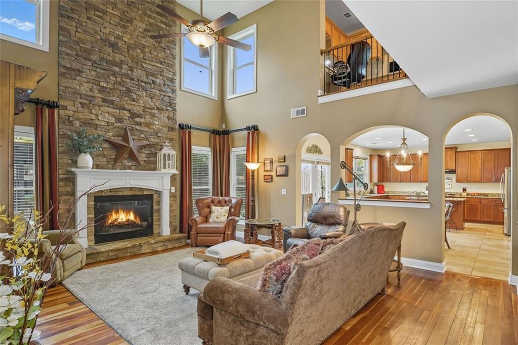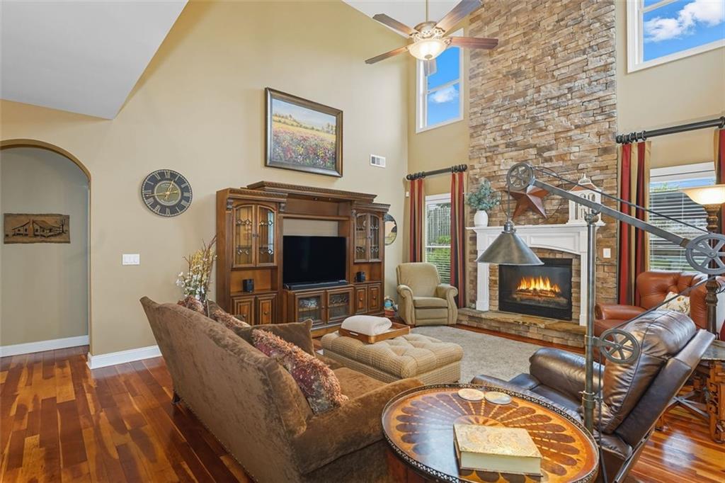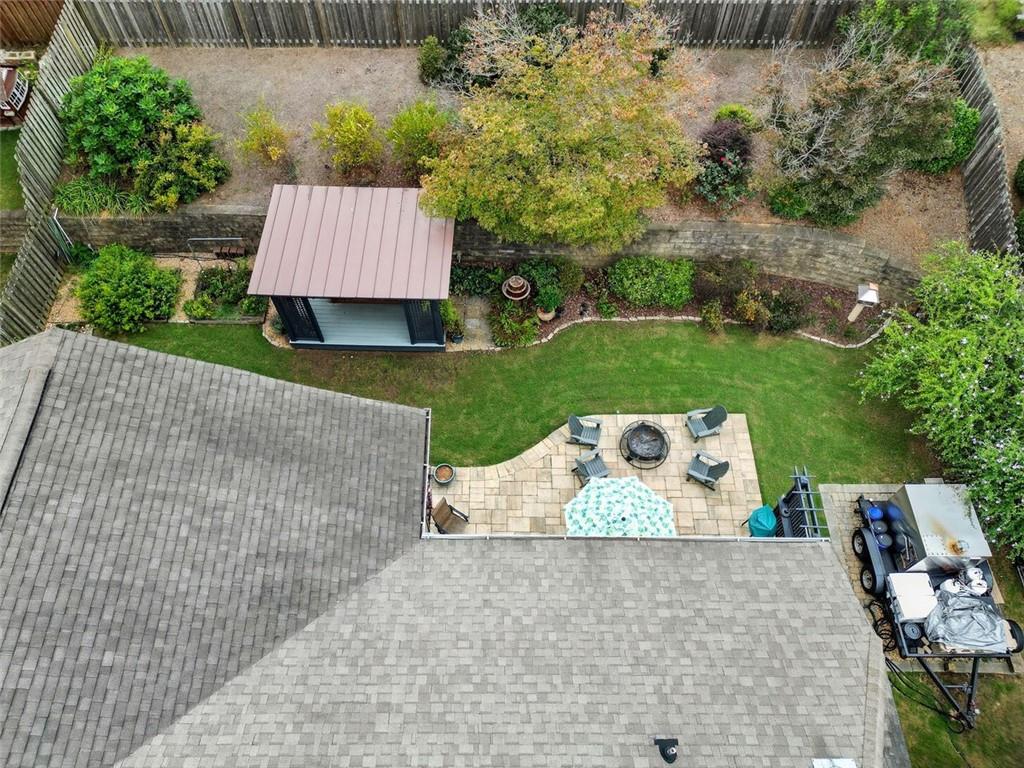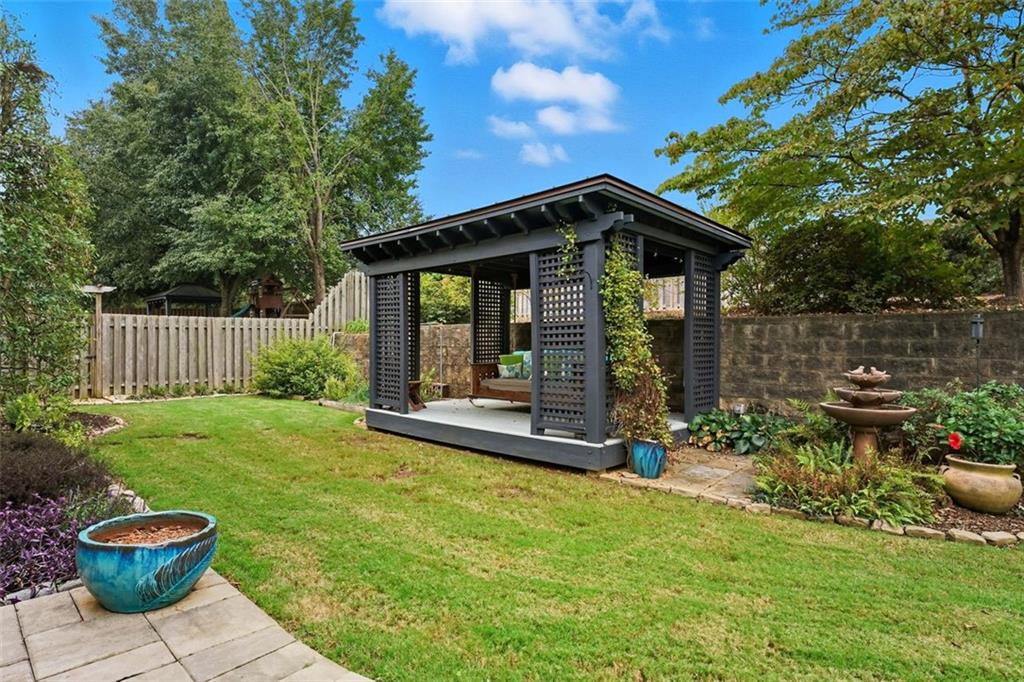 Welcome to this thoughtfully designed 2005 Craftsman-themed home offering 5 bedrooms, 3.5 baths, and nearly 4,000 square feet of comfortable living. The main level features the primary suite with a newly remodeled shower, dual vanities, generous closet space, and a 3 car side entry garage. Upstairs are four additional bedrooms and two full baths, along with a versatile loft that includes custom built-in desks—ideal for study, creative projects, or working from home. One of the bedrooms has been fully sound-insulated and currently serves as a quiet office. Upstairs bedrooms include built-in closets, and the home is wired with ethernet and cable for reliable connectivity throughout. The interiors showcase something truly special: ¾-inch heart-of-cherry hardwood floors milled from the farm where the owner grew up, accented by pecan transition boards. The main level is open and full of natural light, highlighted by a two-story family room with a stacked-stone fireplace that rises to the ceiling and the room is pre-wired for surround sound. A spacious kitchen with ample counter space and stainless-steel appliances flows easily to the outdoors, perfect for everyday living and entertaining. Practical upgrades include a 5-year-old 50 gallon water heater and a 2-year-old downstairs HVAC system. A Honeywell security system remains with the home. Step outside to a backyard built for both beauty and enjoyment. A custom paver patio, added in 2020, includes a 50-amp electrical service to power outdoor cooking or entertaining. The fenced yard (new section in back of property in 2022) with a 10’ side entry gate is full of thoughtful landscaping—a butterfly garden, three blueberry bushes, a fig tree, heirloom althea trees, a beautiful Savannah holly tree, a mature Cloud 9 flowering dogwood, a chaste/vitex tree, and perennial flowers that bring color and pollinators all season long. An inviting outdoor pavilion, topped with a sturdy standing metal roof installed in 2022, is wired for lighting and a ceiling fan so you can relax in the shade year-round. The patio includes specialty lighting for a cook station area with a natural gas connection for grilling. This home combines timeless Craftsman character with tons of meaningful updates, plenty of space, and a backyard retreat—all within a great school district and 4 minutes from the best hiking trails at Kennesaw Mountain National Battlefield Park.