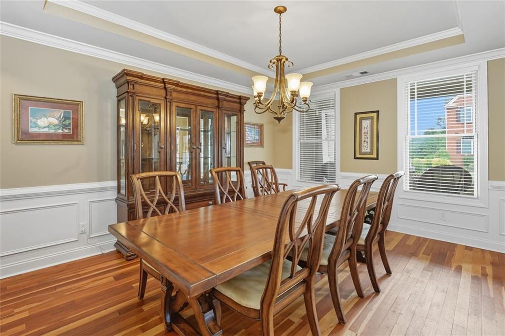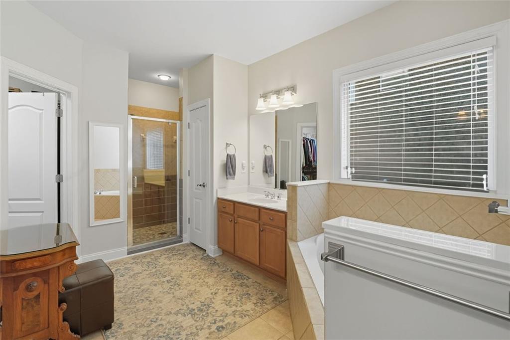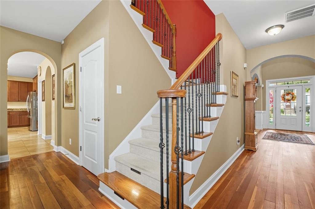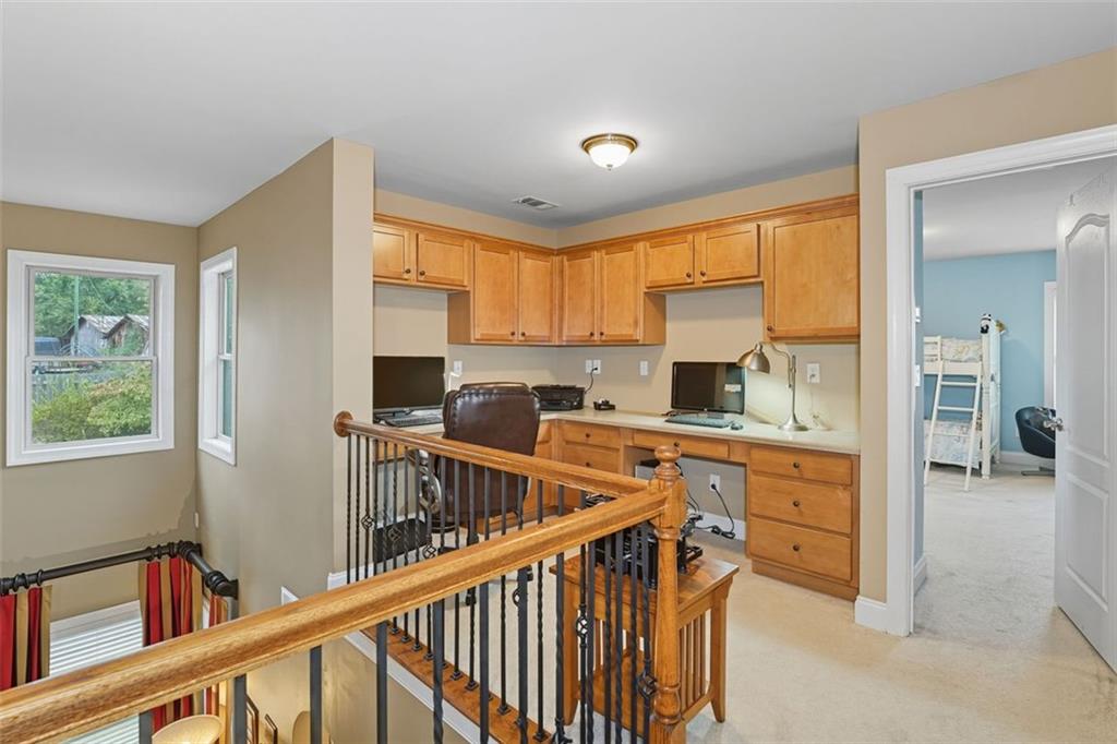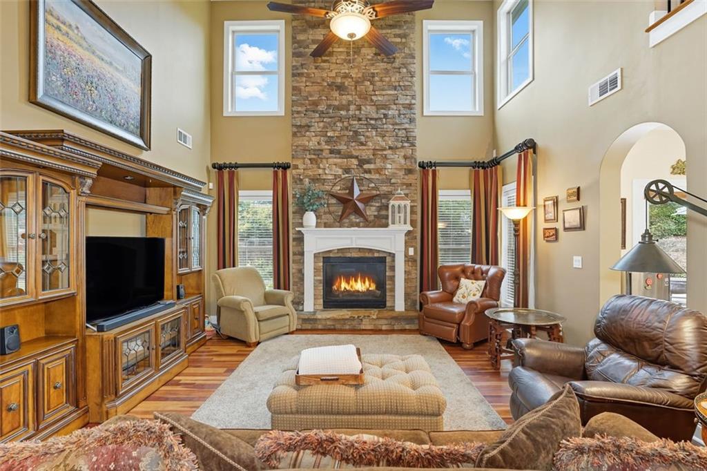 Welcome to this thoughtfully designed 2005 Craftsman-themed home offering 5 bedrooms, 3.5 baths, and nearly 4,000 square feet of comfortable living. The main level features the primary suite with a newly remodeled shower, dual vanities, generous closet space, and a 3 car side entry garage. Upstairs are four additional bedrooms and two full baths, along with a versatile loft that includes custom built-in desks—ideal for study, creative projects, or working from home. One of the bedrooms has been fully sound-insulated and currently serves as a quiet office. Upstairs bedrooms include built-in closets, and the home is wired with ethernet and cable for reliable connectivity throughout. The interiors showcase something truly special: ¾-inch heart-of-cherry hardwood floors milled from the farm where the owner grew up, accented by pecan transition boards. The main level is open and full of natural light, highlighted by a two-story family room with a stacked-stone fireplace that rises to the ceiling and the room is pre-wired for surround sound. A spacious kitchen with ample counter space and stainless-steel appliances flows easily to the outdoors, perfect for everyday living and entertaining. Practical upgrades include a 5-year-old 50 gallon water heater and a 2-year-old downstairs HVAC system. A Honeywell security system remains with the home. Step outside to a backyard built for both beauty and enjoyment. A custom paver patio, added in 2020, includes a 50-amp electrical service to power outdoor cooking or entertaining. The fenced yard (new section in back of property in 2022) with a 10’ side entry gate is full of thoughtful landscaping—a butterfly garden, three blueberry bushes, a fig tree, heirloom althea trees, a beautiful Savannah holly tree, a mature Cloud 9 flowering dogwood, a chaste/vitex tree, and perennial flowers that bring color and pollinators all season long. An inviting outdoor pavilion, topped with a sturdy standing metal roof installed in 2022, is wired for lighting and a ceiling fan so you can relax in the shade year-round. The patio includes specialty lighting for a cook station area with a natural gas connection for grilling. This home combines timeless Craftsman character with tons of meaningful updates, plenty of space, and a backyard retreat—all within a great school district and 4 minutes from the best hiking trails at Kennesaw Mountain National Battlefield Park.