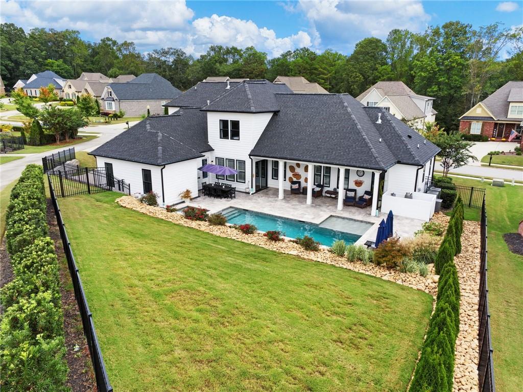 **Enjoy the Chateau Élan Lifestyle** in this easy-living ranch home with an inviting saltwater pool, spa, and covered entertaining space just steps from the main level. Newly planted landscape buffer will grow fast to give even more privacy while enjoying the outdoor space. The curb appeal alone will capture your attention—modern cottage charm with a light, bright, and happy vibe. A welcoming covered front porch** sets the tone, while the corner lot provides added privacy and extra driveway space for guest and a side-entry 3-car garage. Inside, you’ll find high ceilings, 8’ doors, hardwood floors throughout, and oversized maintenance-free windows that flood the home with natural light. The **Owner’s Suite on the main** level features a vaulted ceiling, spa-style bath with double vanities, separate soaking tub, extra-large shower, and a spacious walk-in closet with built-ins plus direct access to the main laundry. Two additional guest suites—each with its own full bath—are also conveniently located on the main level. The dining room with glass barn doors offers versatility as a formal space or private office. The **chef’s kitchen** showcases a large center island, walk-in pantry, and seamless flow into the open family room and breakfast area—all with views of the outdoor oasis. Whether indoors or out, the poolside scenery creates a true “room with a view.” Upstairs, the bonus level provides a retreat for guests or family members needing extra privacy. A large bedroom suite includes a second laundry space, while a tucked-away bonus room offers flexibility as a workout room, office, or additional guest space. Château Élan is truly unlike any other gated community in the Southeast. Set beside the award-winning **Château Élan Resort, Winery & Spa**, it offers an unmatched combination of resort-style amenities, convenience, and community charm. **Resort-Inspired Amenities** * Three **18-hole championship golf courses** plus practice facilities * **Tennis and Pickleball amenities** * **Indoor fitness center** with group classes * **Indoor gymnasium and walking track** * **Junior Olympic–sized pool** with kiddie pool & active swim team * Outdoor sports fields, **playground**, and a **dog park** **Connected & Convenient** *Golf cart–friendly** neighborhood with access to the Braselton LifePath—connecting to nearby neighborhoods, restaurants, shops, and parks * Just 5 minutes to **Northeast Georgia Medical Center–Braselton** and full medical campus * Easy access to **I-85** for all that Atlanta offers * Close to **Lake Lanier** for boating and water recreation * Within 45 minutes of the **University of Georgia (Athens)** * Only an hour from the **North Georgia Mountains** for hiking, wineries, and scenic getaways ### **Community & Lifestyle** * **Historic Downtown Braselton** nearby, with year-round festivals, concerts, and local events * **Braselton Trolley** offers easy access to restaurants, shops, and community happenings * A true sense of neighborhood charm combined with resort-level luxuries *Château Élan isn’t just a place to live—it’s a lifestyle that blends elegance, convenience, and community in one of the Southeast’s most sought-after locations.* NOTE: LAWN MAINTENANCE IS INCLUDED IN THE HOA FEES FOR THIS HOME! More time for you to relax and enjoy!