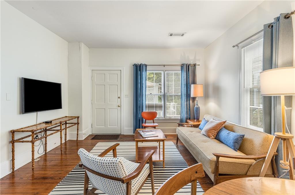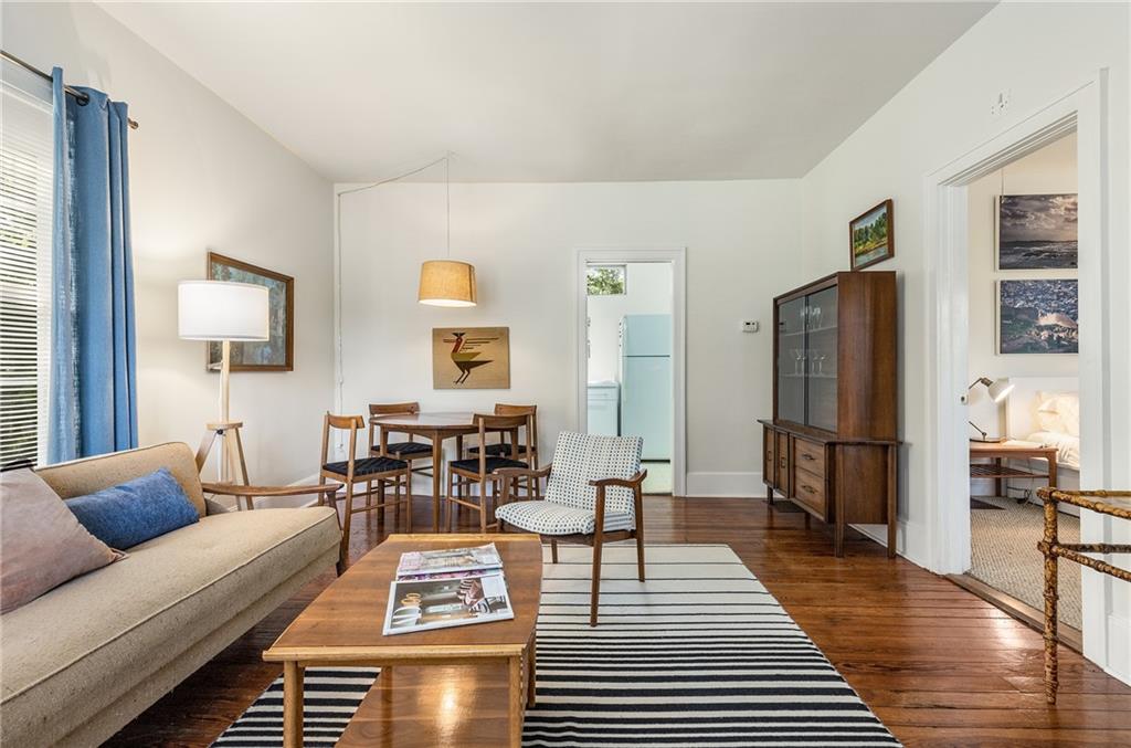 Set above Whitespace Gallery in a reimagined carriage house, this one-bedroom, one-bath apartment marries historic character with mid-century modern design. The fully furnished space is filled with natural light, thoughtfully appointed furnishings, and the ease of all utilities included. A private deck extends the living space outdoors, perfect for unwinding in a neighborhood that feels like no other. Living here means being in the center of Inman Park—Atlanta’s first garden suburb and now one of its most vibrant intown communities. The tree-lined streets lead to boutiques, cafés, and some of the city’s best restaurants, from casual neighborhood favorites to world-class dining destinations. The BeltLine, Krog Street Market, and Little Five Points are just blocks away, while Midtown, Old Fourth Ward, and downtown Atlanta are all within easy reach. This isn’t just a place to live—it’s a chance to experience one of Atlanta’s most dynamic neighborhoods from the comfort of a historic yet modern home.
