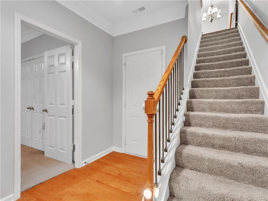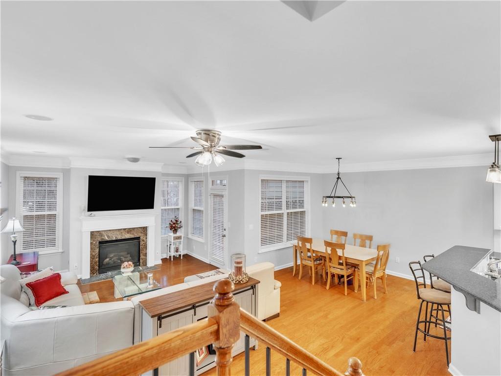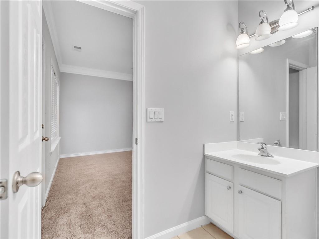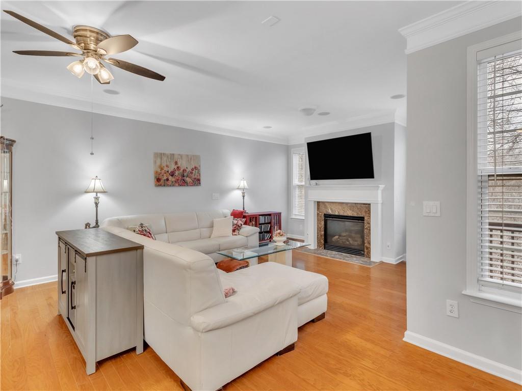 Welcome Home to Low-Maintenance Living in a Gated Community Inside the Perimeter! This well-maintained home features three spacious bedrooms, each with its own private full bath, plus a convenient half bath for guests. The main level showcases beautiful hardwood flooring, abundant natural light, and a cozy kitchen nook. The modern kitchen is equipped with stainless steel appliances, granite countertops, a stylish tile backsplash, and a functional island—perfect for entertaining. A versatile separate dining room can also serve as a home office or creative space. Upstairs, the oversized primary suite features a spacious walk-in closet, a relaxing sitting area, and a spa-like bath with a tiled shower, double vanity, and jetted tub. A generously sized secondary bedroom includes its own private en-suite bath. The lower level provides an additional bedroom with a full bath, plus a two-car garage. Ideally located near shopping, dining, Truist Park, downtown Vinings, and with easy access to downtown Atlanta, this home is a must-see!
