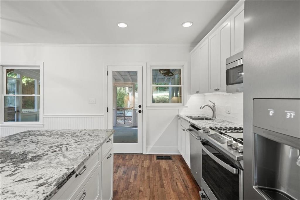 Charming 1950s Bungalow in the Heart of Atlanta. Nestled on a quiet street, this updated bungalow blends vintage character with modern comfort. Step inside to find beautifully refinished hardwoods throughout and a brand-new kitchen and spa-inspired primary bathroom that make everyday living feel like a retreat. Enjoy multiple outdoor living spaces with a welcoming front deck, a screened back porch, and a spacious rear deck perfect for morning coffee, entertaining, or simply relaxing in the shade. The backyard also features an outbuilding, ideal for an artist’s studio, workshop, or creative hideaway, plus a storage shed for added convenience. The attic offers even more room for storage or future expansion. Practical updates include new driveway, new appliances, newer systems and a durable metal roof. Best of all, you’re just 10–15 minutes to Midtown, Buckhead, Virginia Highlands, Decatur, and Emory, with Lindbergh MARTA station right down the street for easy commuting. This home is move-in ready, full of charm, and positioned for unbeatable access to all that Atlanta has to offer. Don’t wait—this one won’t last!