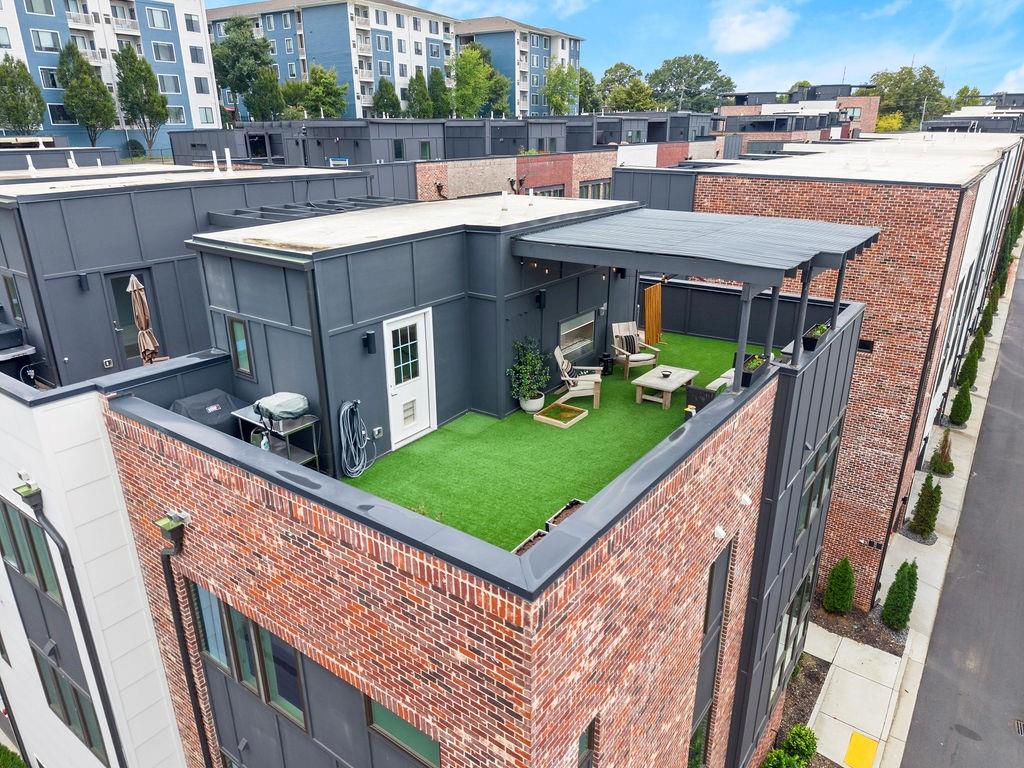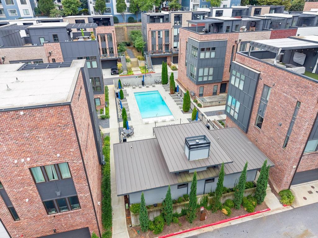 STUNNING corner unit townhome in coveted Chelsea Westside - this beauty is a must see! This beautiful 3 bed/3.5 bath home comes stacked with tons of luxe upgrades, incredible location and an amazing community all nestled within West Midtown! This modern, sleek home has dark hardwood flooring throughout with huge windows casting sunlight in from every corner. The kitchen is an entertainer's dream with unique dark navy cabinetry and a large eat-in kitchen island fit w/ a custom coffee bar, walk-in pantry, and light filtering window treatments. On the home's upper level you will find an owner's suite fit w/ a polished dual vanity bathroom, separate hall laundry room w/ custom storage, and a secondary corner bedroom - even a Peloton nook! Continue upstairs into your private, rooftop deck with views of the entire ATL skyline sure to WOW! The home's rooftop has it all: artificial turf, a built-in gas fireplace and a covered pergola to enjoy this additional space as a secondary full entertainment level. 1256 Chelsea's location has you minutes to all of the Westside's offerings of fine dining, retail, trails/parks, easy access to downtown, I75/I85 and I285 - minutes to Top Golf, The Chattahoochee Works, Westside Provisions District, The Interlock. Community amenities include a beautiful central pool w/ outdoor grills and lounging, plus a secured dog park onsite! The Chelsea Westside is a lifestyle within itself in one of the most desirable neighborhoods in the city!