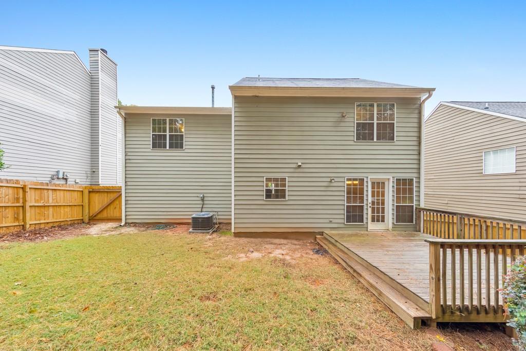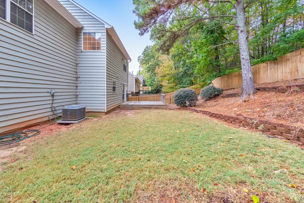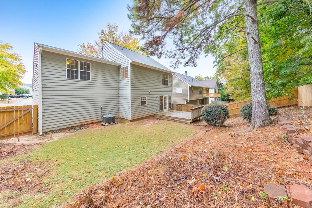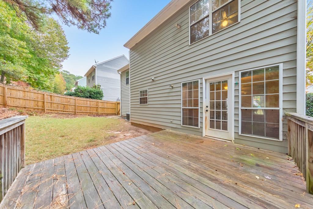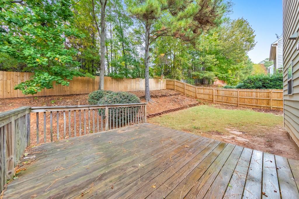 Welcome home to this charming 4 bedroom, 2.5 bathroom residence located in the Northgate at Legacy Park community! Step inside to discover a warm and inviting fireside family room that seamlessly flows into the separate dining room—perfect for everyday living and entertaining. The spacious kitchen boasts ample cabinet and counter space, stainless steel appliances, and a convenient breakfast bar. A half bathroom completes the main level. Upstairs, the primary suite features elegant tray ceilings, a large walk-in closet, and an ensuite bathroom with a separate shower and a relaxing soaking tub. Three generously sized secondary bedrooms share a full bath in the hall, and the laundry closet is also located on the upper level for ultimate convenience. Enjoy outdoor living on the rear deck overlooking the fenced-in backyard—ideal for pets, play, and backyard gatherings. Additional highlights include an attached 2-car garage and access to Legacy Park’s unmatched resort-style amenities spanning 117 acres! Residents enjoy four swimming pools, 10 tennis courts, four pickleball courts, sports fields, fitness facilities, an 18-hole disc golf course, a peaceful community lake, scenic trails, multiple playgrounds, and a vibrant calendar of year-round events. Conveniently located near I-75, Downtown Acworth, Downtown Kennesaw, KSU, and endless shopping and dining options—this home truly has it all! Come see it today!