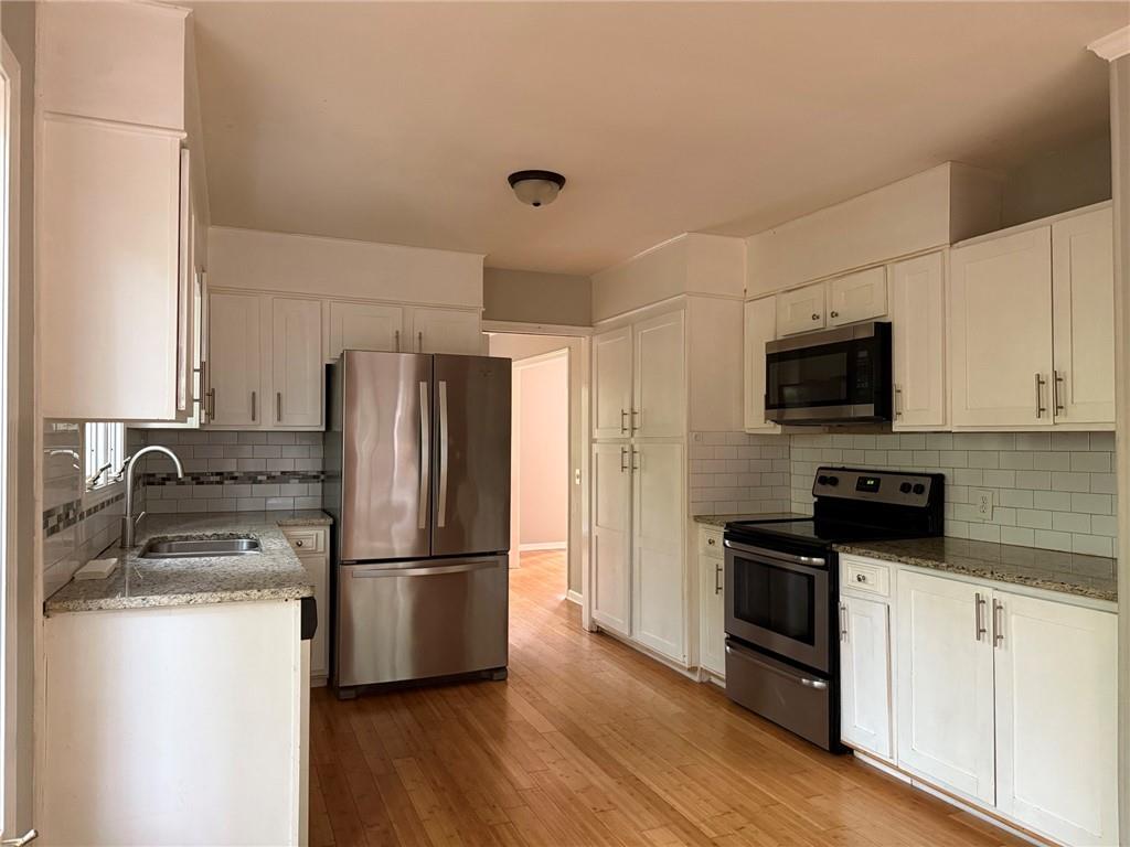 - KitchenCabinets White, Stone Counters, View to Family Room