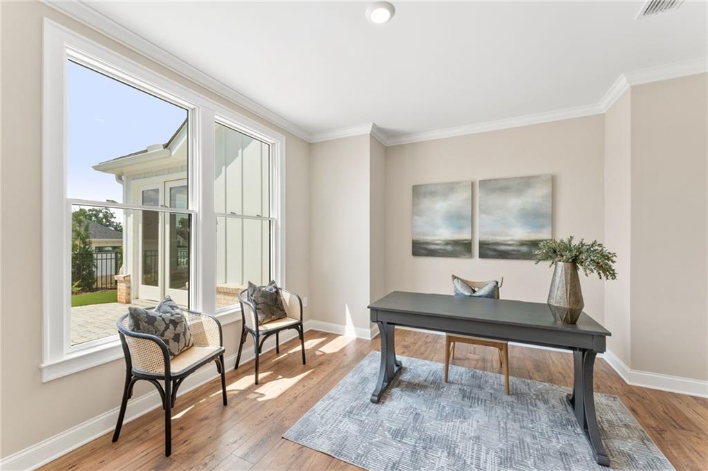 Move in ready home! Enhanced Courtyard! Luxury Ranch home move in ready! Welcome to The Courtyards of Franklin Goldmine and to this quick move in home opportunity featuring the Promenade floor plan. This luxury ranch will have nearly 3,000sqft of finished living space, 3 bedrooms and 3 full baths, open, spacious and bright, will have a bonus area with living area and generous sized 3rd bedroom and full bath, owners suite with vaulted ceiling and sitting area, zero entry stepless shower, large kitchen island, walk in pantry, fireplace in living room, all surrounding a private fenced courtyard. This large flat lot is sits high in the community with a long flat driveway. It is South- East facing and the Courtyard faces South- West creating a light bright home throughout the day. This boutique community will have 27 homesites, offer low maintenance living and as well as amenities including bocce, dog park, fireplace pavilion, and pickleball. The Courtyards are within easy reach of excellent shopping, dining, and entertainment options, including the Hawks Ridge Golf Club and Sawnee Mountain Preserve. Plus, quick and hassle-free access to Highway 20 makes commuting a breeze.