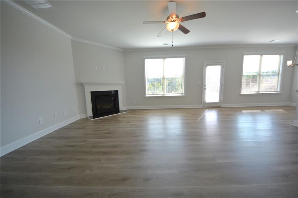 A brand-new four-bedroom, three-bathroom home awaits the first occupant. Special discount if you move in before October 31, 2025! Pool community. Premium lot with unbeatable backyard view. Most extensive ranch floor plan with an OVERSIZED BEDROOM AND FULL BATH UPSTAIRS. Master and two additional bedrooms on the main floor. Hardwoods in main living areas, Stainless Steel Appliances, Granite in kitchen and full baths, 42" Painted Shaker Cabinets, Crown Molding, 5" Trim, Gas Starter Fire Place, Tiled Floors in the Full Bathrooms, Tile in the Master Shower, Double Vanities in Master Bath, and much more. Nestled in the hills alongside Highway 53, Hellen Valley is close to Château Élan retreat, a great neighboring selection of restaurants, and easy access to I-85, making the Mall of Georgia and Atlanta a nearly direct drive.