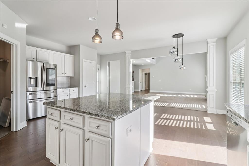 - KitchenKitchen Island, Pantry, Stone Counters, View to Family Room