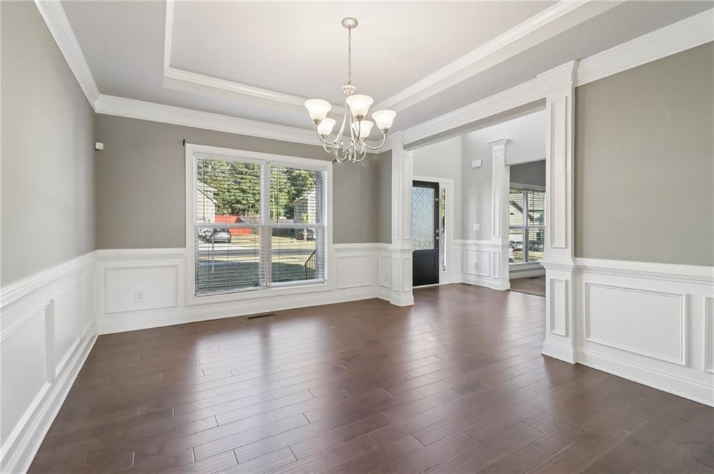 Spacious 5BR/4BA home with a 2-car garage in sought-after Lithonia! The main level offers a formal living and dining room, a stunning 2-story family room with coffered ceilings and detailed trim, plus a large kitchen with granite countertops, tile backsplash, island, pantry, and hardwood floors. A guest bedroom with full bath is also on the main floor. Upstairs features an oversized owner’s suite, three additional bedrooms, and two full baths. Full unfinished basement offers endless possibilities!
