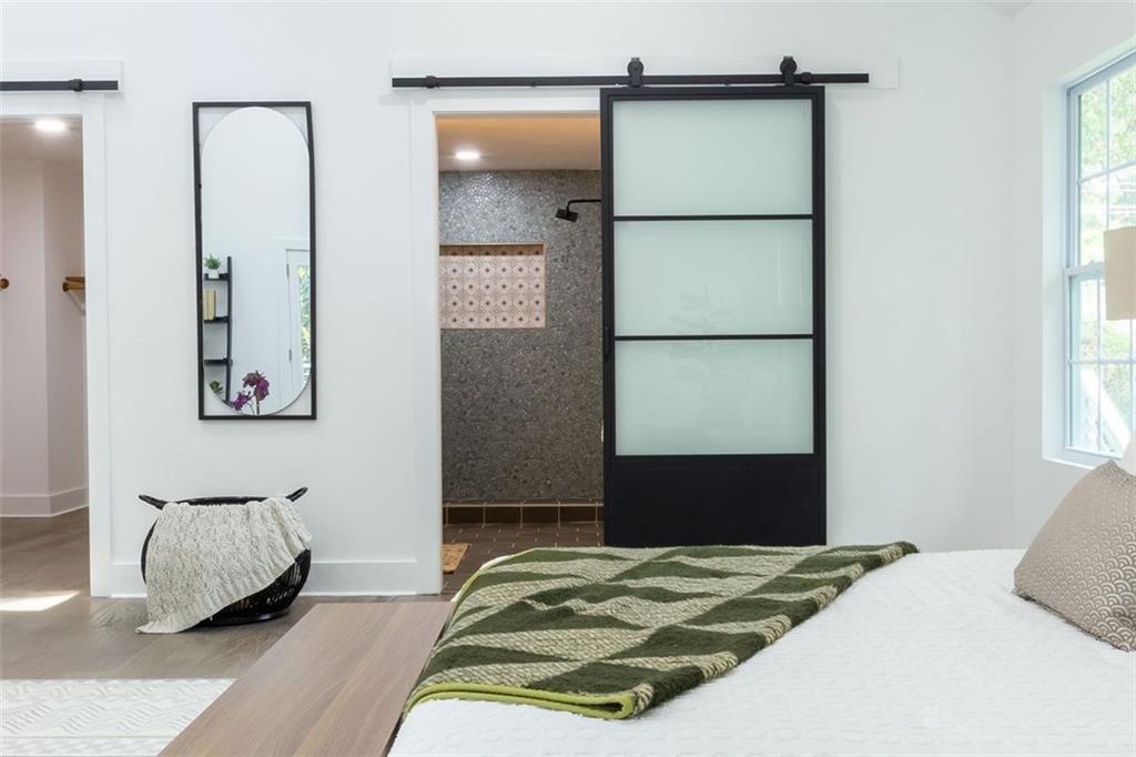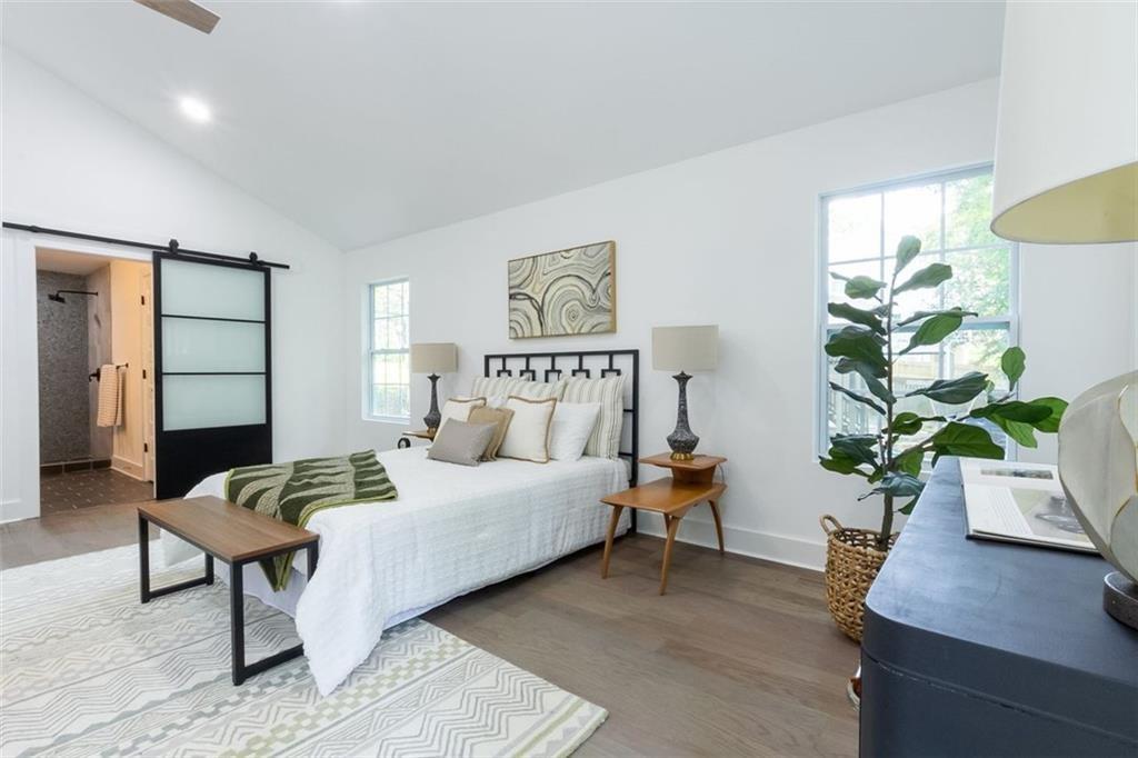 Step into modern elegance at this designer-renovated East Lake bungalow offering open-concept living, high-end finishes, and timeless style. The chef’s kitchen features quartz countertops, two-tone cabinetry, wine fridge, 36” ZLine gas range, and walk-in pantry. Entertain easily with mudroom access to a large rear deck and two cozy fireplaces for year-round ambiance. The vaulted primary suite boasts skylights, fireside sitting area, and custom closets with industrial metal doors. Each bathroom showcases hand-selected tile and luxury fixtures. Private off-street parking and turnaround for easy access. Minutes to Oakhurst Village, Downtown Decatur, Kirkwood, and East Lake Golf Club. A rare blend of craftsmanship, comfort, and convenience — intown living at its finest!