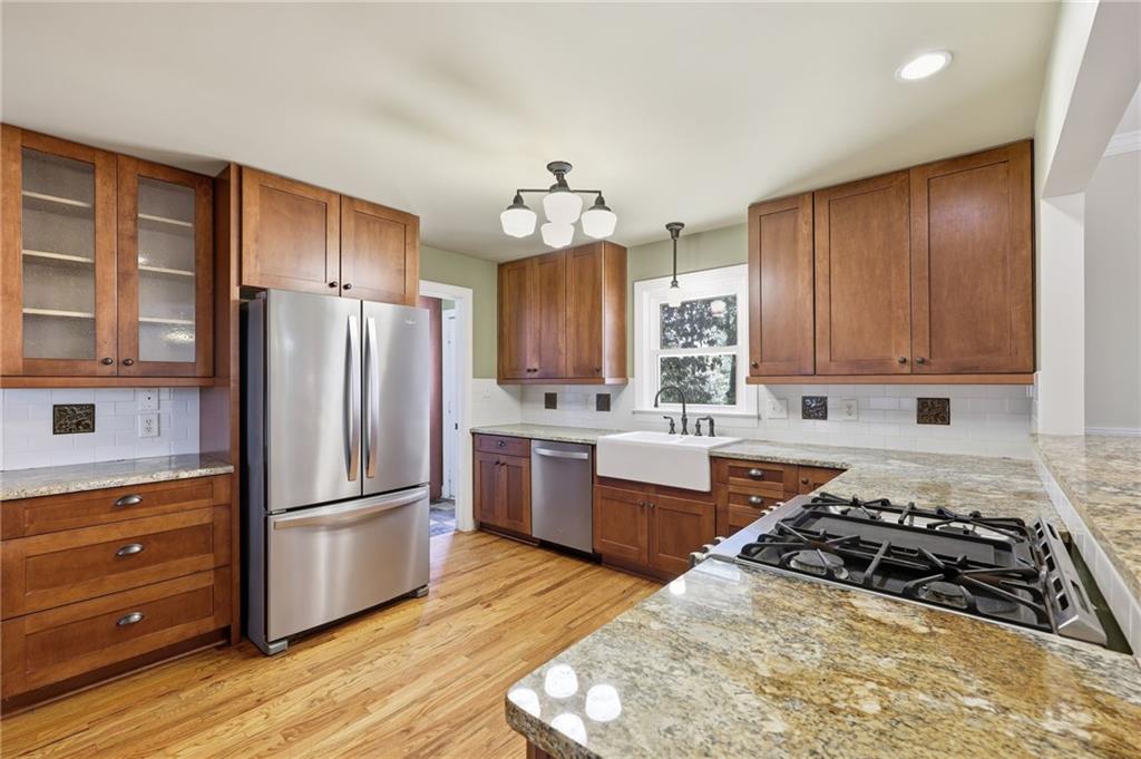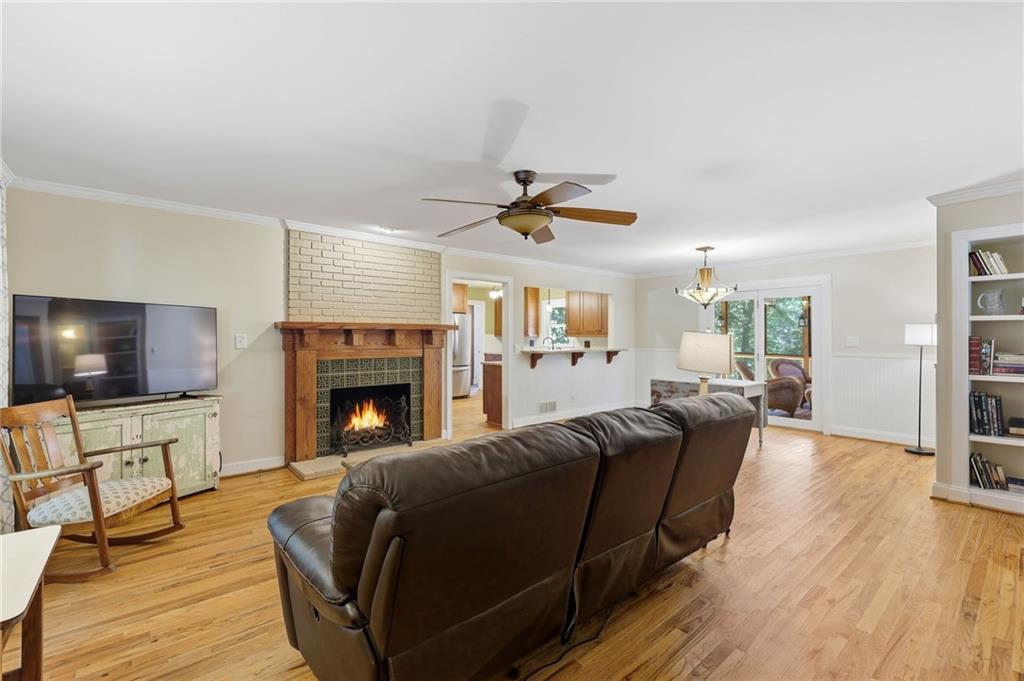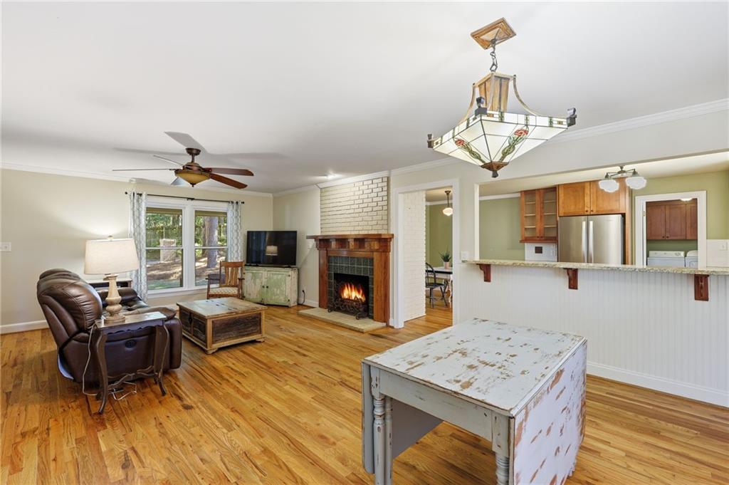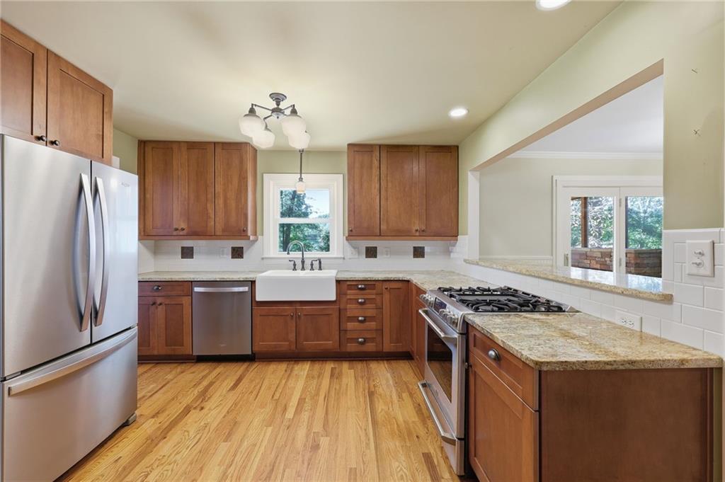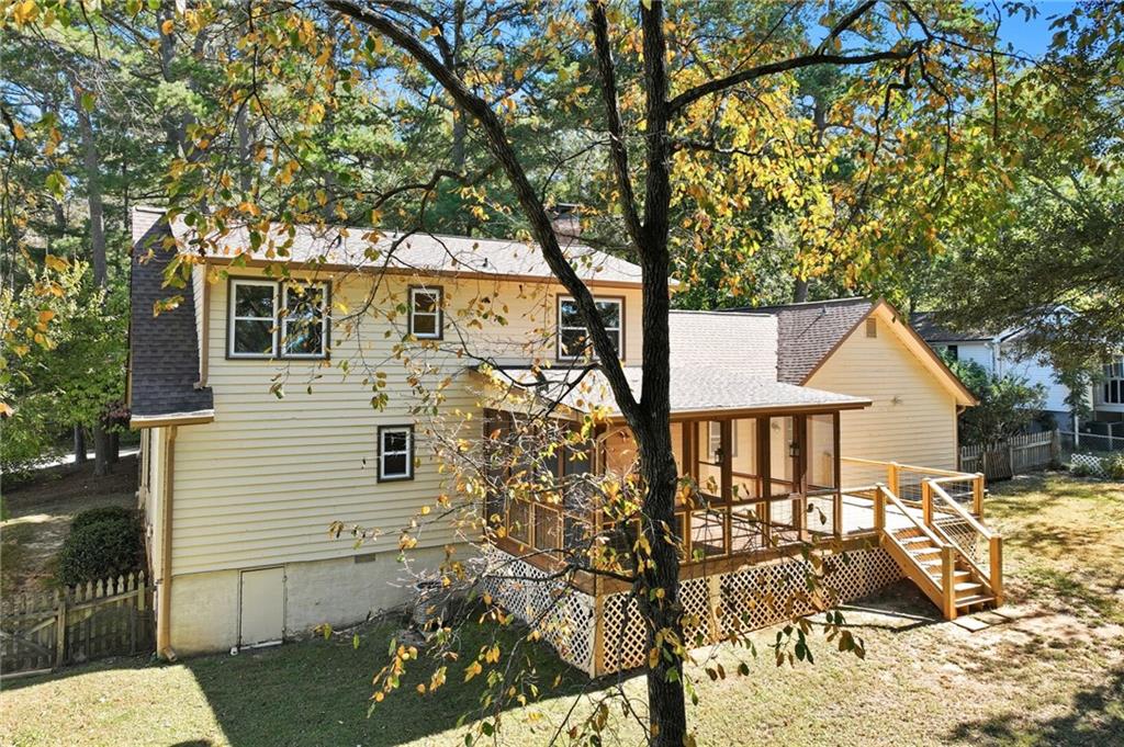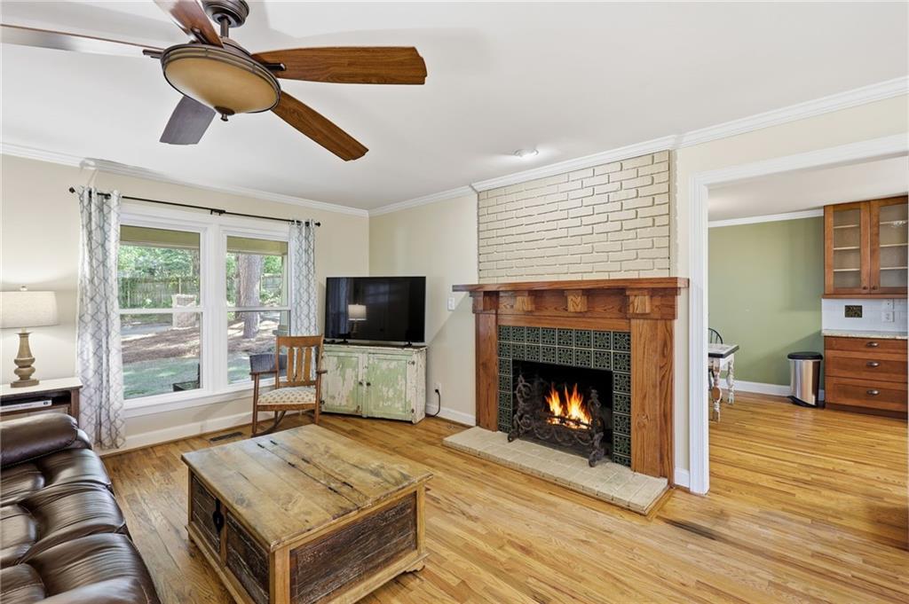 Welcome home to this beautiful 3-bedroom, 2-bath Craftsman-style home that perfectly blends timeless character with modern comfort. From the moment you arrive, you'll appreciate the hard-to-find front porch--ideal for relaxing with morning coffee or greeting neighbors. Step inside to a warm and inviting living area featuring g a masonry fireplace with custom tile work, elegant Craftsman details in the stairwell and mantle, and designer light fixture. The kitchen offers classic shaker-style cabinets, granite countertops, and stainless steel appliances, creating both charm and functionality. Upstairs you will find two very spacious bedrooms. The home's thoughtful updates include newer windows, a roof that is approximately 5 years old and an encapsulated crawl space-ensuring peace of mind for years to come. Enjoy year-round outdoor living with a screened-in back porch featuring a cozy fireplace, plus an open grilling deck overlooking the fenced backyard--perfect for entertaining family and friends. Conveniently located near shopping, schools, and parks, this home offers the best of community living with the quality and character of Craftsman design!