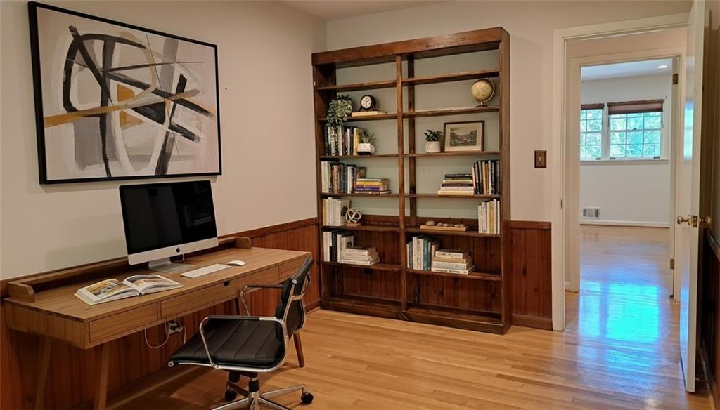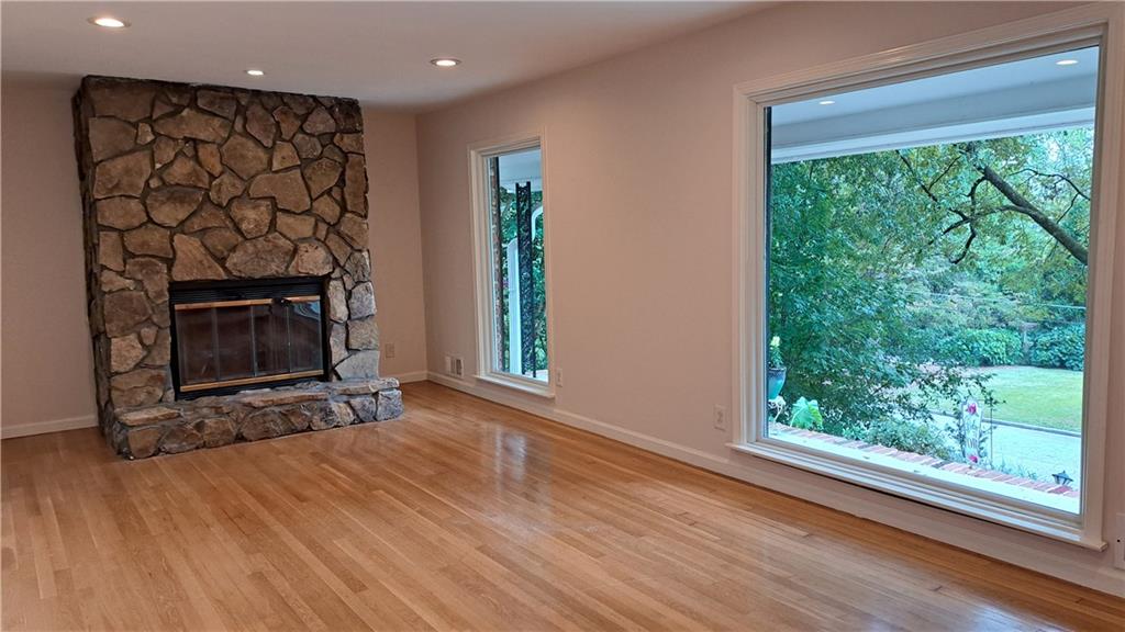 One-story brick traditional on short, quiet cul-de-sac street of just 11 homes. NEW kitchen, NEW roof, gutter covers, NEW insulation, NEW air conditioning, NEW water heater. Partial window replacement. Recessed lighting. Sunny living room with big windows and woodburning fireplace, NEW white kitchen open to dining room or family room with built-in cabinetry and sliding door to patio overlooking peaceful backyard with view of trees and woods. Beautiful original 3/4" solid oak floors in living room, hall, and bedrooms. Four bedrooms with generous closet space. Two full baths (one remodeled with walk-in shower, one with whirlpool tub and heat/vent fan). One heated & partially finished room downstairs for rec room/office/craft room. Downstairs also has additional storage space, mechanical room, and a large 2-car garage with quiet door openers. Shady Valley Park (tennis courts, basketball court, playground, soccer field, etc) is one block away. Memberships to Roxboro Swim/Tennis (with heated pool) available also. Easy access to expressways, MARTA train stations, & all conveniences. Pine Hills is nestled between Buckhead Village, Lenox/Phipps, Brookhaven & Children’s Healthcare. Only two owners since house was custom-built in 1961.*** SHORT-TERM OWNER FINANCING POSSIBLE: Need to sell your home before buying, or want to "date the (interest) rate" while the interest rate hopefully drops? Seller will consider one-year owner financing at 2% with 30% down. All interest will be paid at the end, making the rate effectively lower.