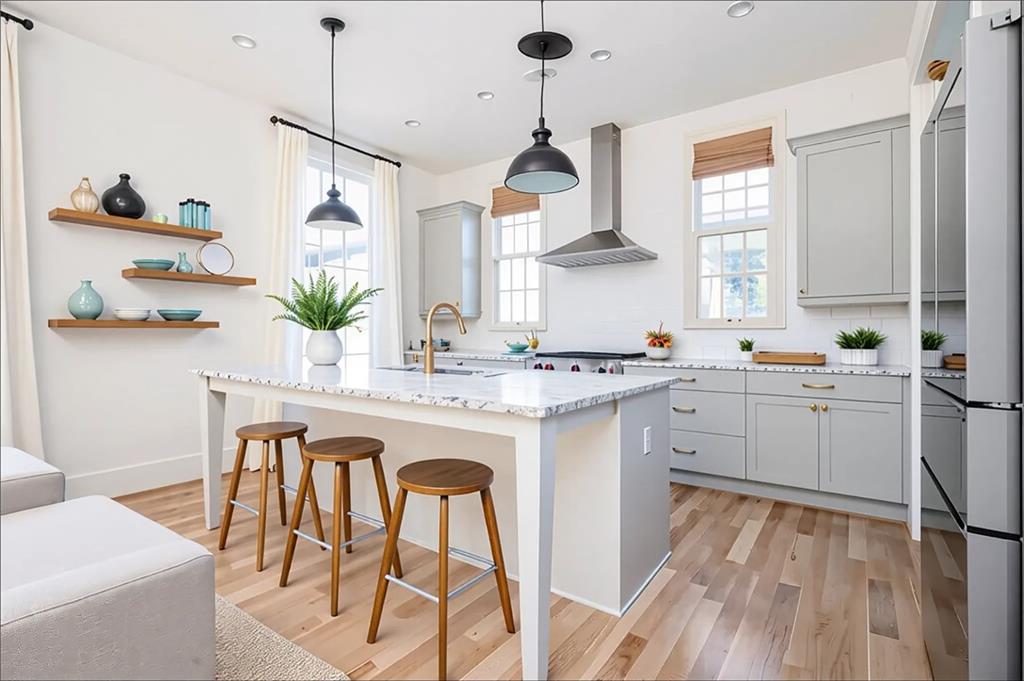 - KitchenBreakfast Bar, Cabinets Other, Eat-in Kitchen, Kitchen Island, Other Surface Counters, Pantry Walk-In, Solid Surface Counters, View to Family Room