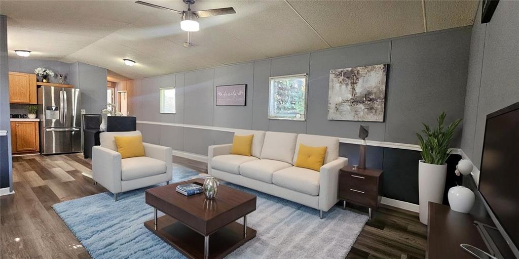 Welcome home to this beautiful 3 bed 2-bath mobile home, offering modern comfort and community living at its best! Enjoy fresh paint throughout, luxury vinyl plank flooring, and an updated refrigerator and ample cabinet space and pantry! The open-concept design flows effortlessly from the kitchen to the living and dining areas, creating a bright, spacious feel perfect for relaxing or entertaining. The primary suite features a private full bath and walk-in closet, while the additional bedrooms provide flexibility for guests, family, or a home office. This move-in ready home also includes a washer and dryer, plus free lawn care, water, and trash service — making maintenance a breeze! You’ll love the community amenities: a sparkling pool, clubhouse, basketball court and more — all nestled in a top-rated school district for added peace of mind. Unit A 30