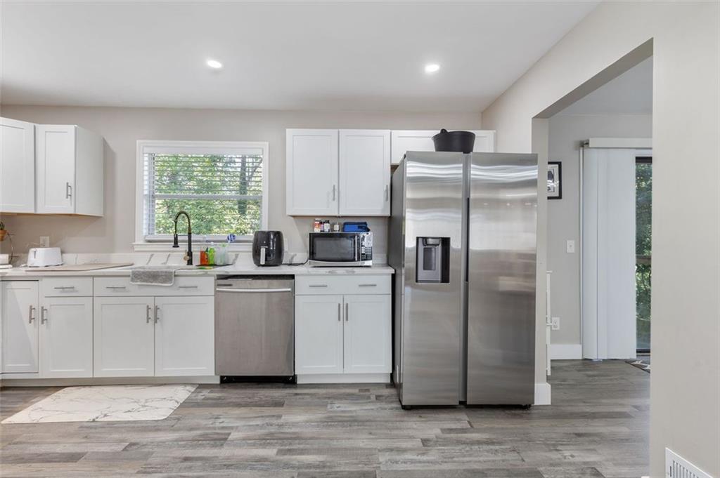 RARE FIND TWO HOMES IN ONE, JUST STEPS FROM LAKE LANIER! Fully renovated top to bottom, this property offers 2 separate living spaces perfect for multi-generational living, rental income. Upper level features 3 beds, 2 baths, kitchen, laundry, living & dining. Lower level has 2 beds, 1.5 baths, 2 living areas, full kitchen, laundry & private entry. Both levels have new appliances, quartz counters, modern finishes & separate laundry rooms. New deck, flooring, lighting, paint & more. Minutes from marinas, parks, shopping & medical. Live in one, rent the other! Must see!