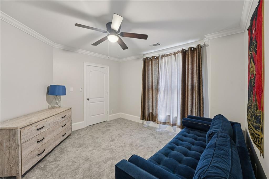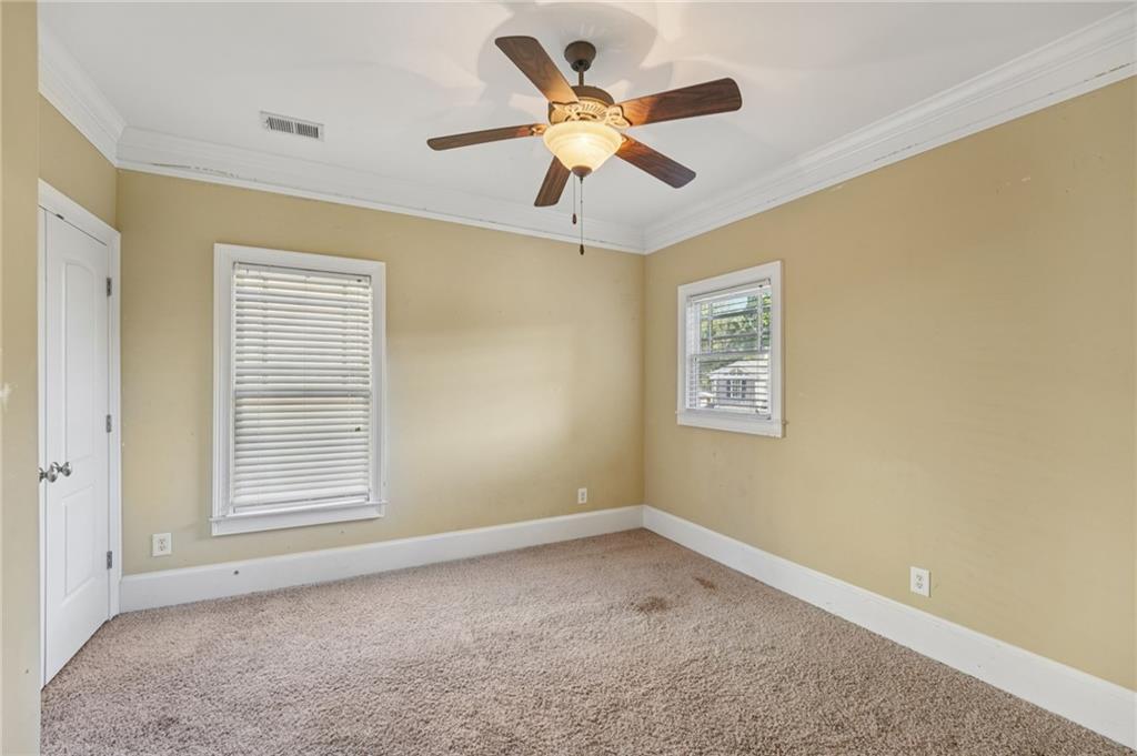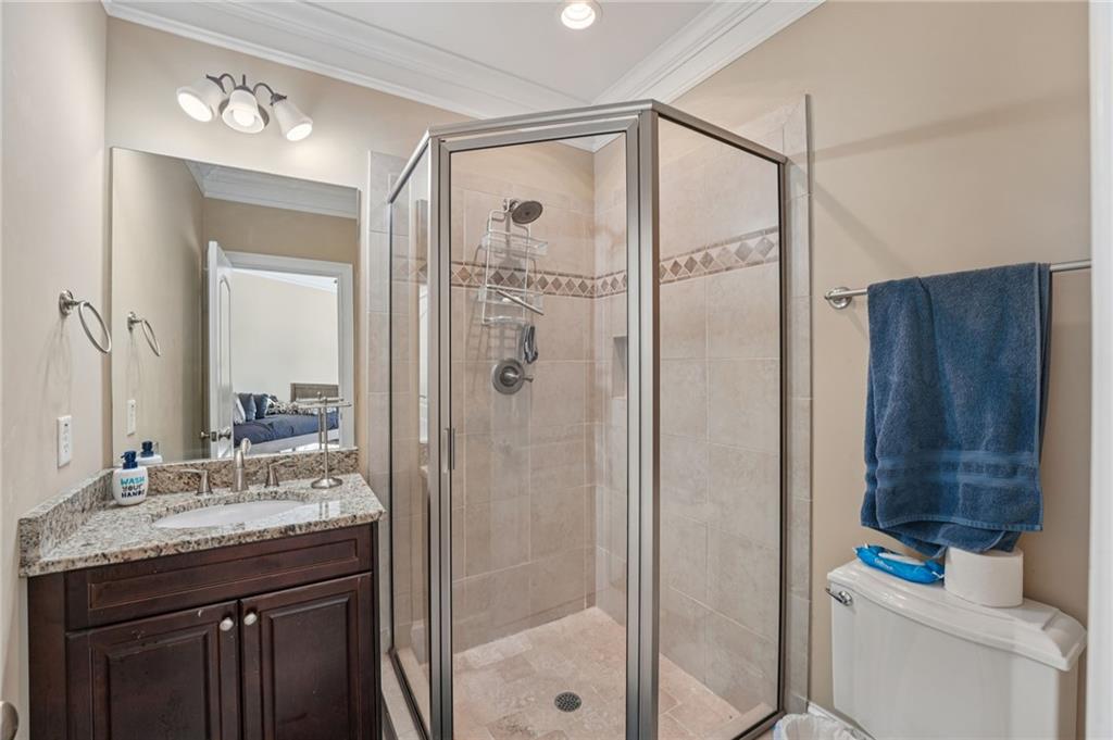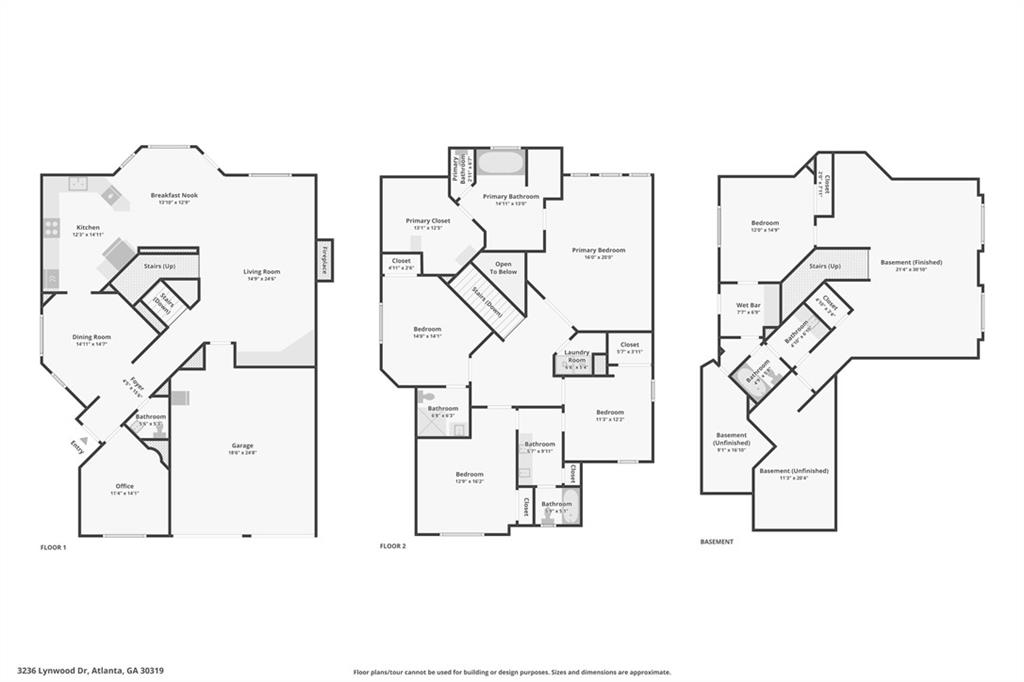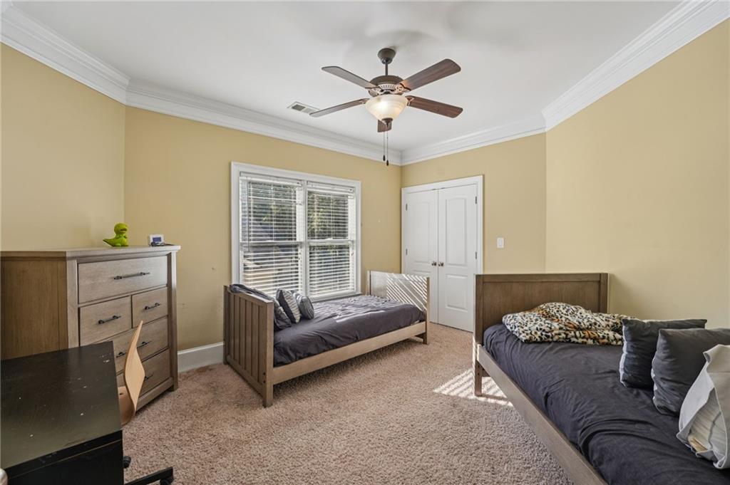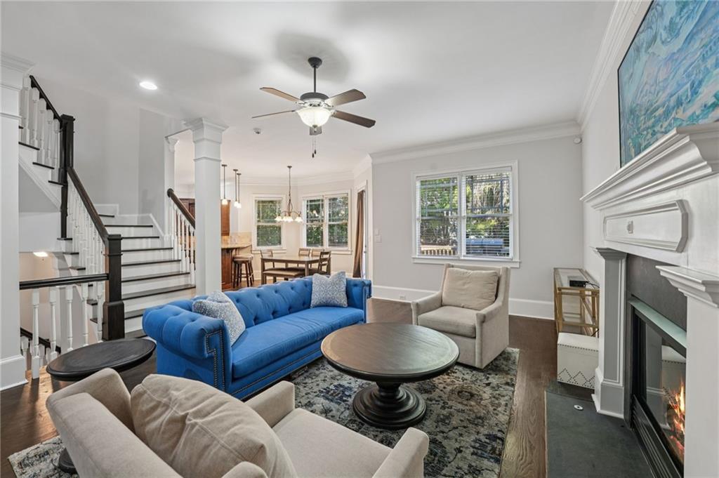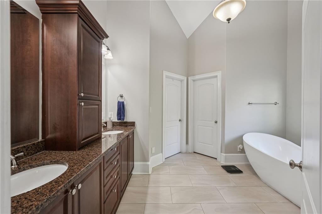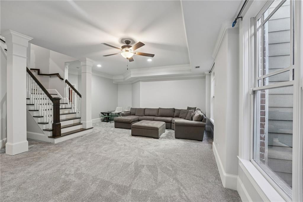 Lovely home with bright open spaces! An inviting front porch welcomes you inside to gorgeous hardwood floors throughout the main living areas. A bright office to the right, and a formal dining room with crown molding to the left. The spacious living room is filled with natural light and features built-ins and a cozy fireplace, flowing seamlessly into the informal dining area with private backyard views. The kitchen is perfect for entertaining, featuring a breakfast bar, granite countertops, stainless steel appliances including a double oven, and a stylish tile backsplash. A convenient half bath completes the main level. Upstairs, retreat to the oversized primary suite with a tray ceiling, spa-like bath with dual granite vanities, a pedestal soaking tub, and a fully tiled walk-in shower. A huge walk-in closet provides plenty of storage. Three spacious secondary bedrooms include a Jack-and-Jill bath shared by two, plus a private en-suite in the third. The upstairs laundry room adds everyday convenience. The finished basement with new carpet offers a large gathering area—perfect for a media room, man cave, craft space, or playroom—plus a bedroom, full bath, and a wet bar ready for movie nights. Unfinished spaces offer additional possibilities. Fantastic location just a stone’s throw from the Lynwood Recreation Center with pool, tennis, soccer fields, playground, parks, gazebo, and more, while also just minutes to Downtown, Truist Park, and major conveniences. Book your tour today!