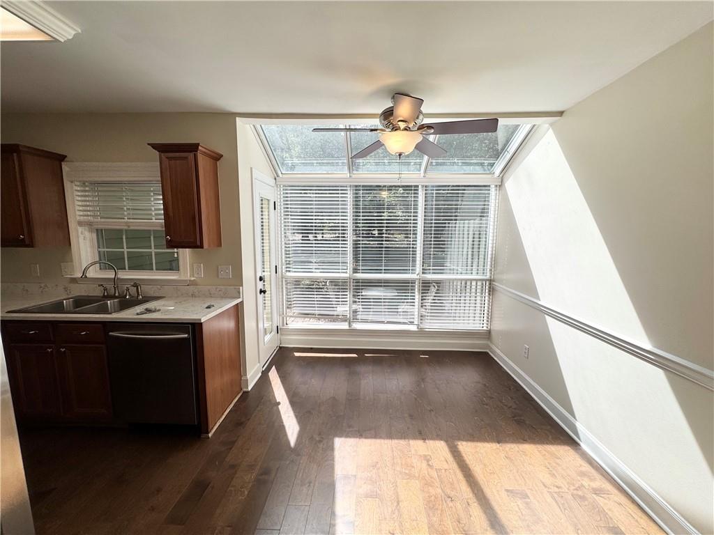Discover easy living in one of Sandy Springs’ most charming gated communities, perfectly located for those who love to live, work, and play. Enjoy quick access to top restaurants, coffee shops, walking trails, MARTA, GA 400, and I-285. Step inside to find hardwood floors flowing through the main level, creating an inviting and open feel. The kitchen is bright and welcoming, featuring quartz countertops, stainless-steel appliances, and plenty of natural light from the beautiful solarium windows overlooking the trees. Upstairs, each bedroom includes its own private full bath ideal for comfort, privacy, or a great roommate setup. Out back, relax on your private patio surrounded by peaceful wooded views with direct access to the community garden and walking trail. This home blends convenience, comfort, and nature in one of the most desirable locations in metro Atlanta.