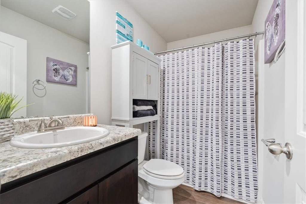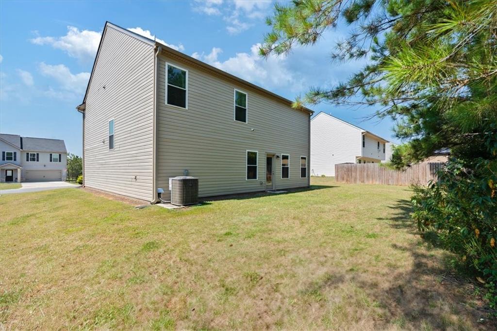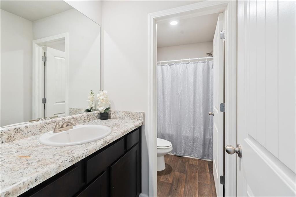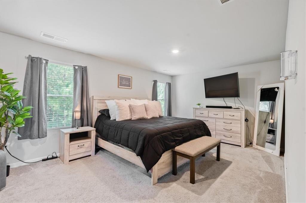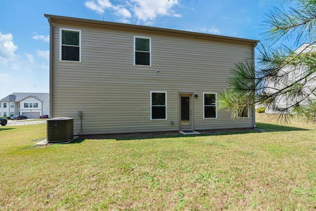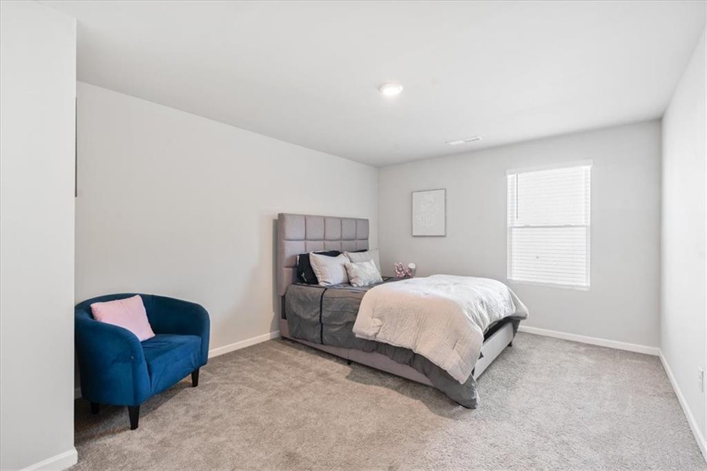 Modern living meets classic comfort in this stunning 5 bedroom, 3 bathroom home located in the peaceful Goodall Woods community. Built in 2022 and nestled on a .32 acre level lot, this home offers plenty of space inside and out for everyday living and entertaining. Step inside to find a welcoming layout with high ceilings, wide entryways, and an effortless flow from room to room. The spacious kitchen is a true standout, boasting sleek granite countertops, stainless steel appliances, a large island, and generous cabinet storage all open to a light-filled family room that invites connection and comfort. On the main level, you will find a private guest bedroom and full bath, offering flexibility for overnight visitors or multi generational living. Upstairs, the oversized primary suite is your personal retreat, featuring a spa-inspired bathroom with dual sinks and two separate walk in closets. Three additional upstairs bedrooms provide the space you need for family, hobbies, or hosting guests. The second floor laundry adds everyday convenience, while the LVP flooring throughout the main level offers durability and style. Outside, enjoy the benefits of a flat, usable backyard ideal for pets, play, or your future backyard vision. With a thoughtfully designed floor plan, quality finishes, and a prime location just minutes from schools, shopping, and dining, this home is the total package.