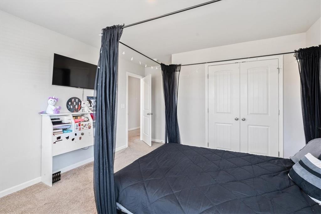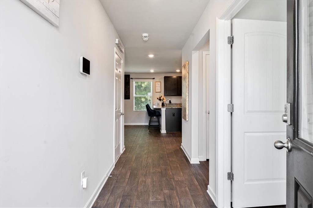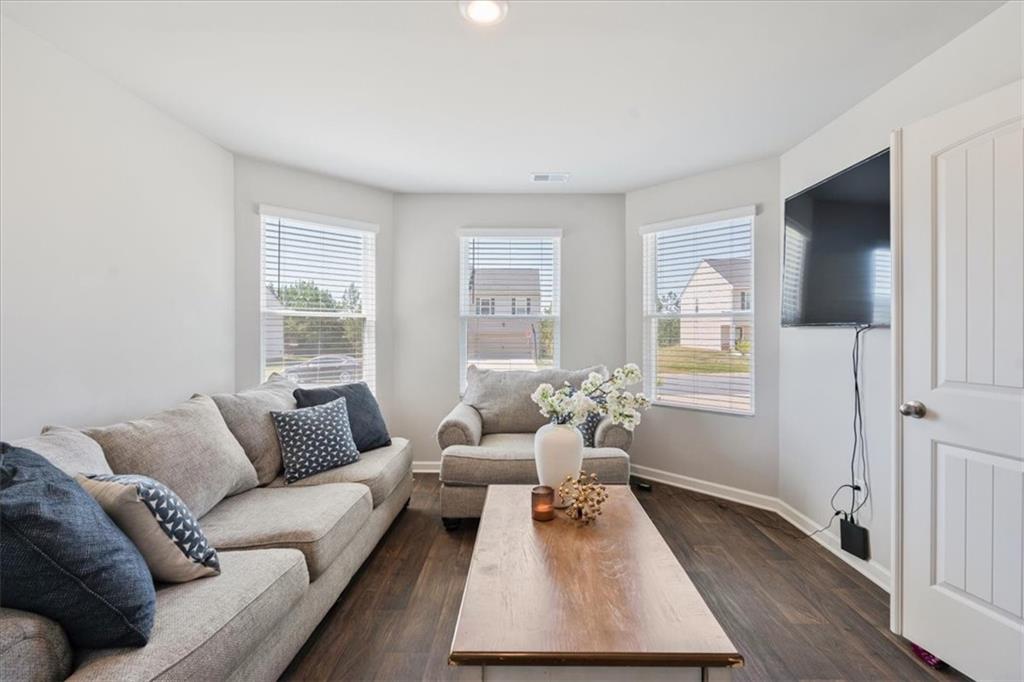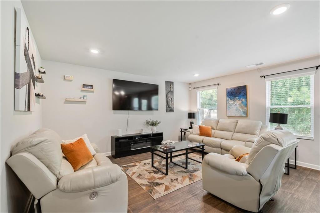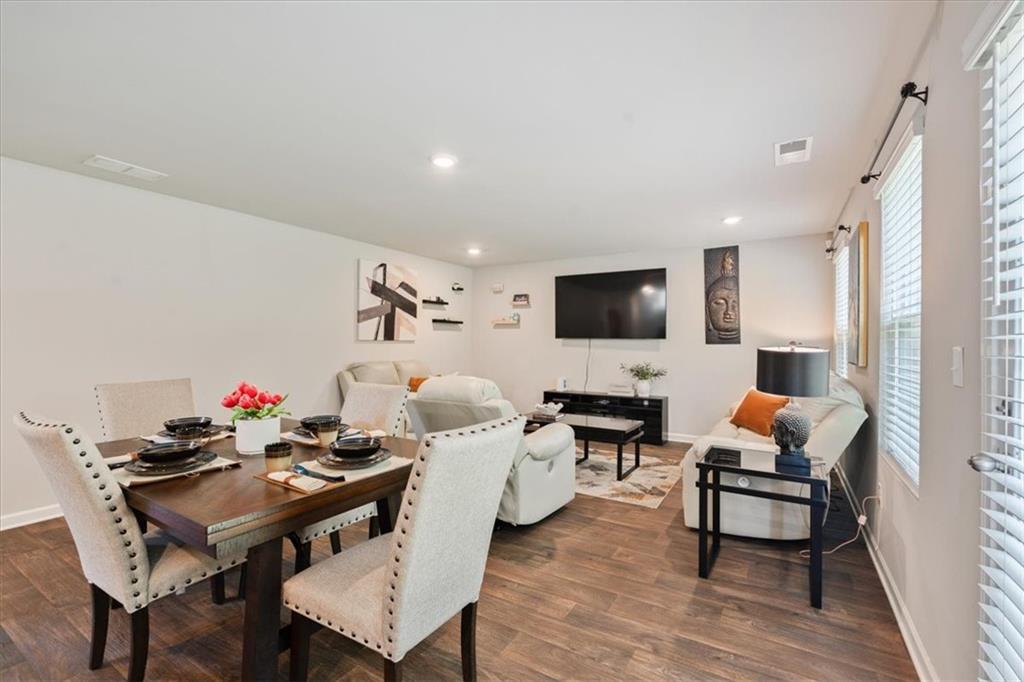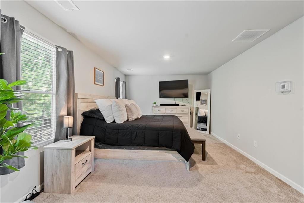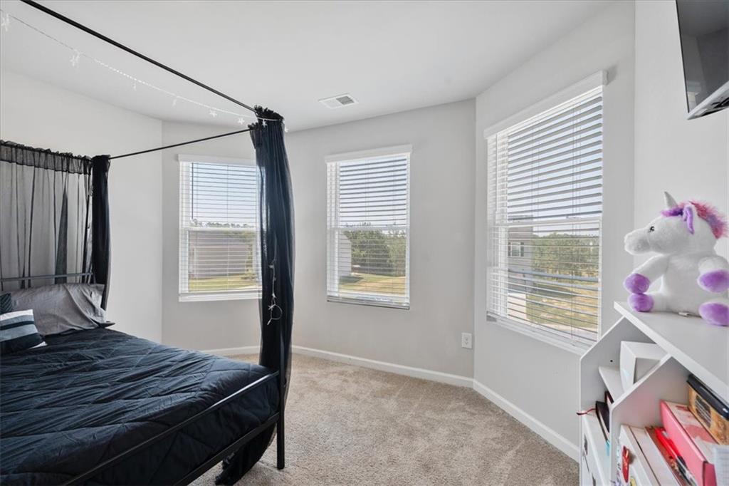 Modern living meets classic comfort in this stunning 5 bedroom, 3 bathroom home located in the peaceful Goodall Woods community. Built in 2022 and nestled on a .32 acre level lot, this home offers plenty of space inside and out for everyday living and entertaining. Step inside to find a welcoming layout with high ceilings, wide entryways, and an effortless flow from room to room. The spacious kitchen is a true standout, boasting sleek granite countertops, stainless steel appliances, a large island, and generous cabinet storage all open to a light-filled family room that invites connection and comfort. On the main level, you will find a private guest bedroom and full bath, offering flexibility for overnight visitors or multi generational living. Upstairs, the oversized primary suite is your personal retreat, featuring a spa-inspired bathroom with dual sinks and two separate walk in closets. Three additional upstairs bedrooms provide the space you need for family, hobbies, or hosting guests. The second floor laundry adds everyday convenience, while the LVP flooring throughout the main level offers durability and style. Outside, enjoy the benefits of a flat, usable backyard ideal for pets, play, or your future backyard vision. With a thoughtfully designed floor plan, quality finishes, and a prime location just minutes from schools, shopping, and dining, this home is the total package.