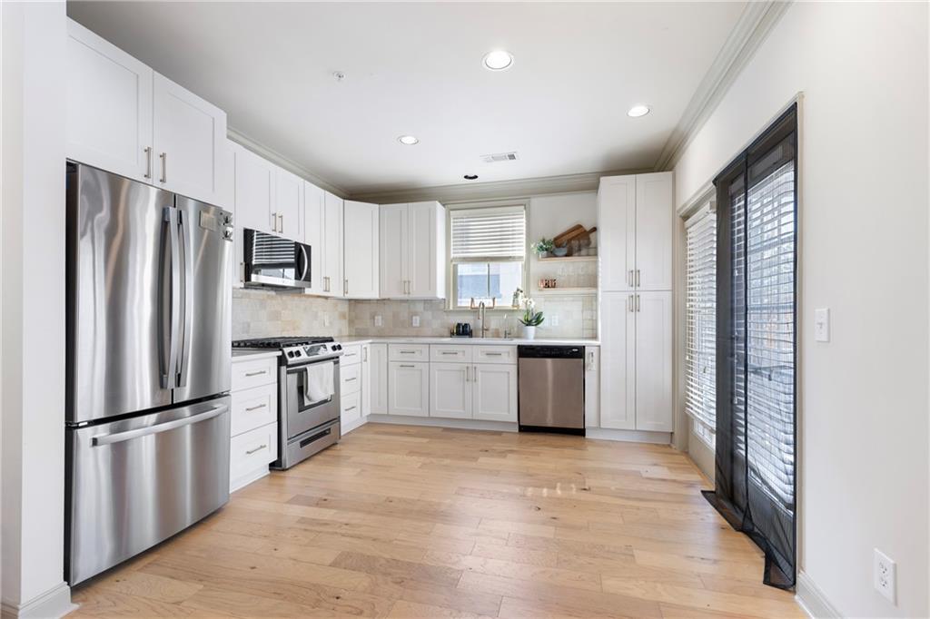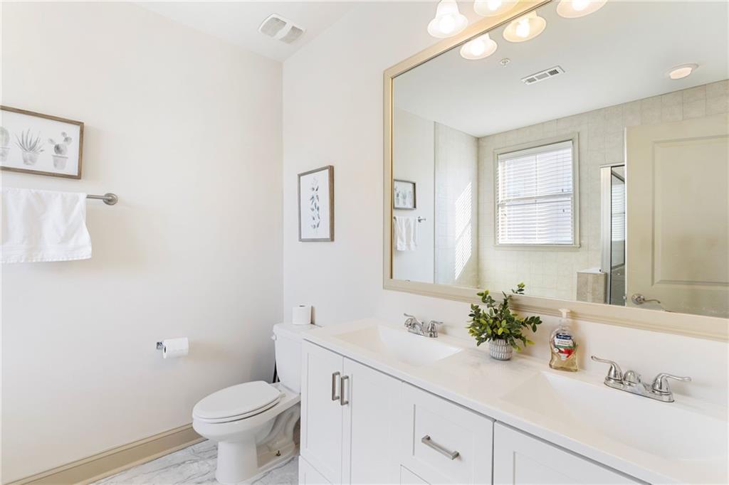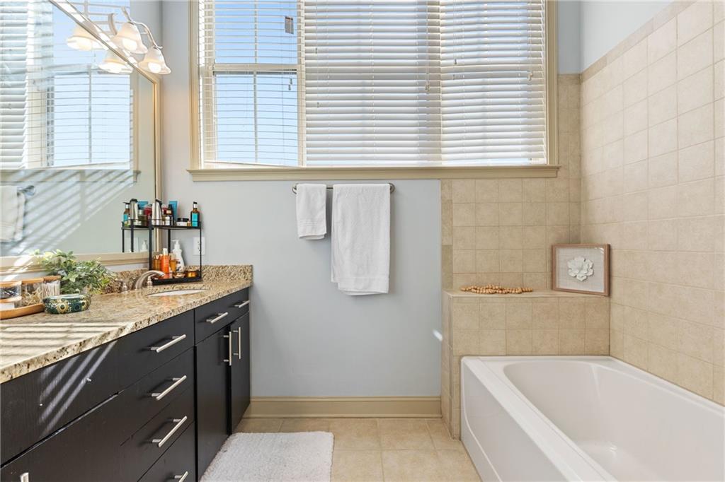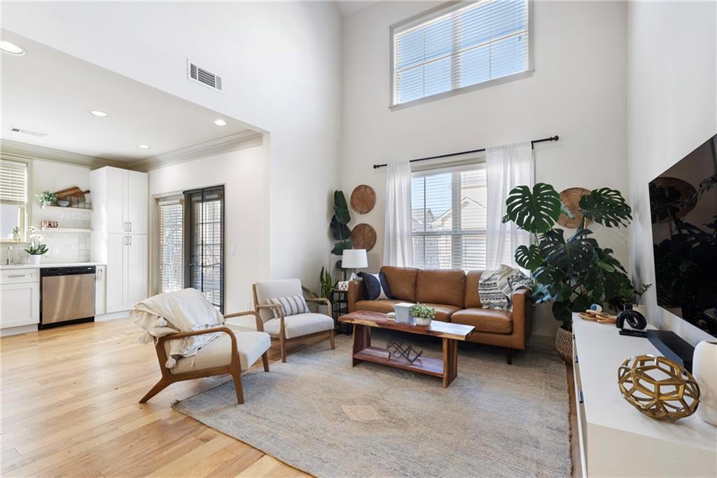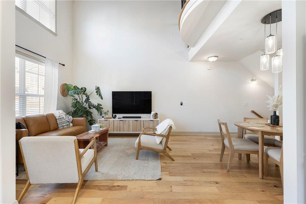 Welcome to this stunning end-unit 2-bedroom, 2.5-bathroom townhome in the highly sought-after gated community of Georgetown at Perimeter Walk. Offering the perfect blend of style, comfort, and convenience, this home is just steps away from Main Street, Politan Row, and Ashford Lane. Step inside to a bright, open-concept layout featuring a dramatic two-story great room and a newly renovated kitchen with soft-close cabinets, sleek quartz countertops, a modern tile backsplash, stainless steel appliances, and recessed lighting. Enjoy direct access to a private balcony with an egg swing — the perfect spot to start your morning coffee or unwind in the evening. The main level flows effortlessly from the kitchen to the dining area and great room, making it ideal for entertaining. You’ll also find a convenient laundry room, powder bath, and a secondary bedroom with a cozy fireplace and en suite bath featuring quartz countertops. Upstairs, the spacious master suite offers a true retreat with double vanities, granite countertops, a garden tub, a separate shower, and a large walk-in closet. A versatile loft area provides extra space for a home office, gym, or lounge. (Note: stairs are located at the entryway.) With high ceilings, beautiful hardwood floors, and a fresh modern vibe throughout, this home delivers luxury and livability. The gated community features fantastic amenities — including a pool, outdoor fireplace, and grilling area — plus ample guest parking and easy garage access. Located minutes from top-tier shopping, dining, and major highways (I-285, I-85, and GA-400), this home truly has it all. Don’t miss this opportunity Motivated seller, priced just right!